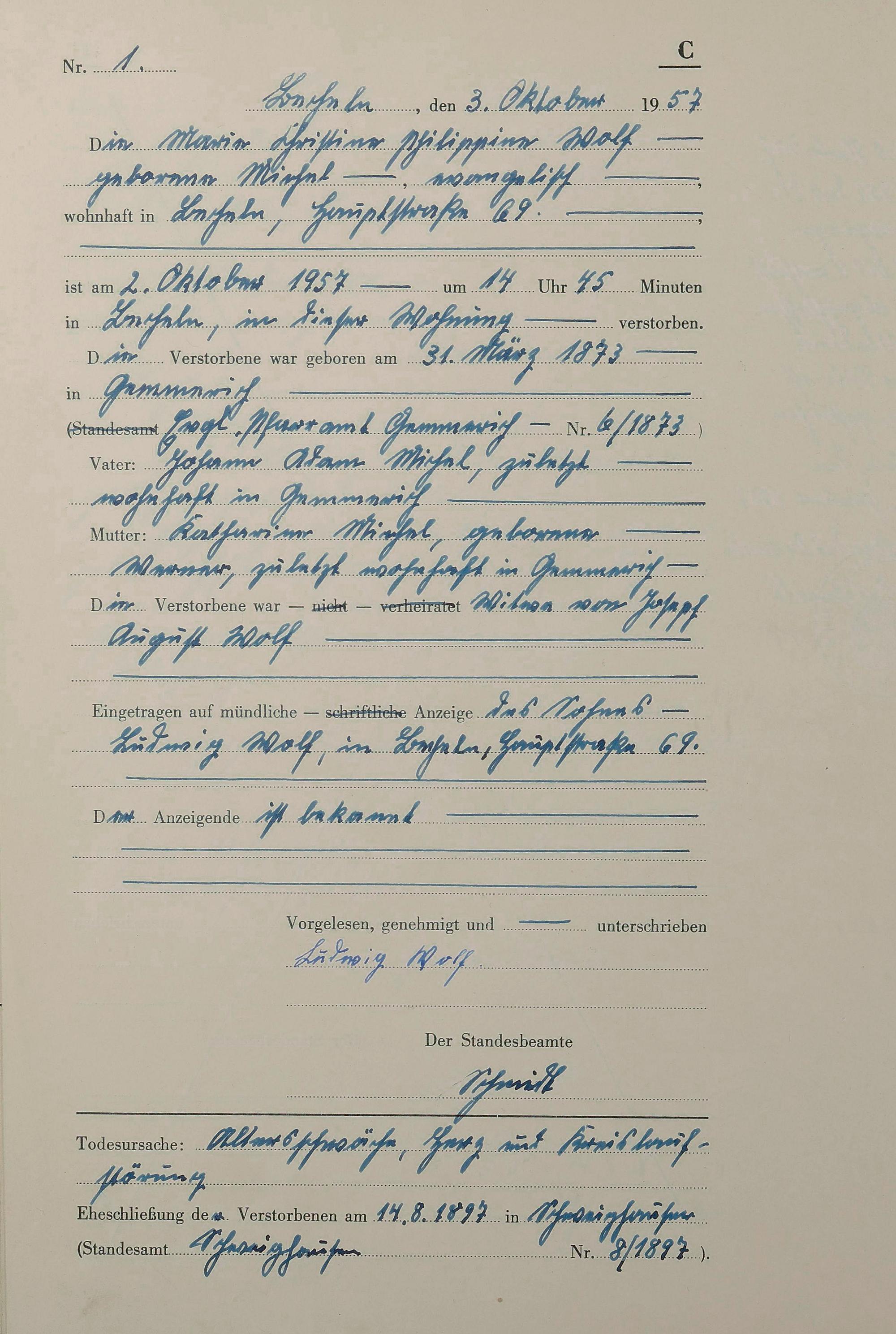 Sterberegister 1957