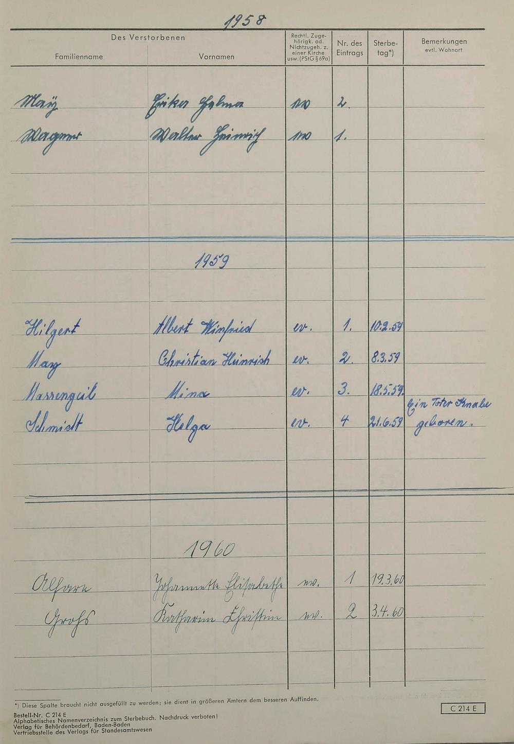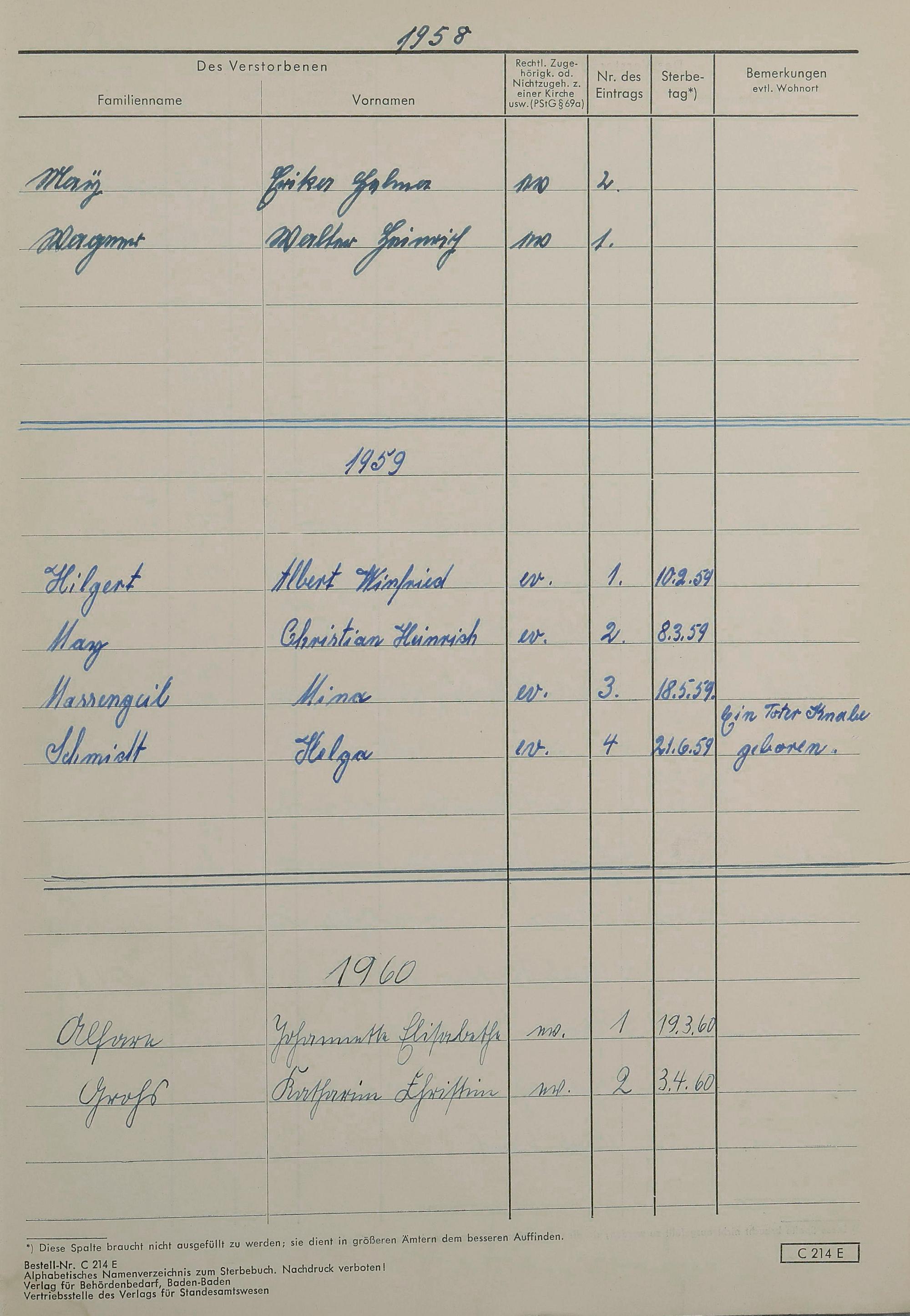 Sterberegister 1959