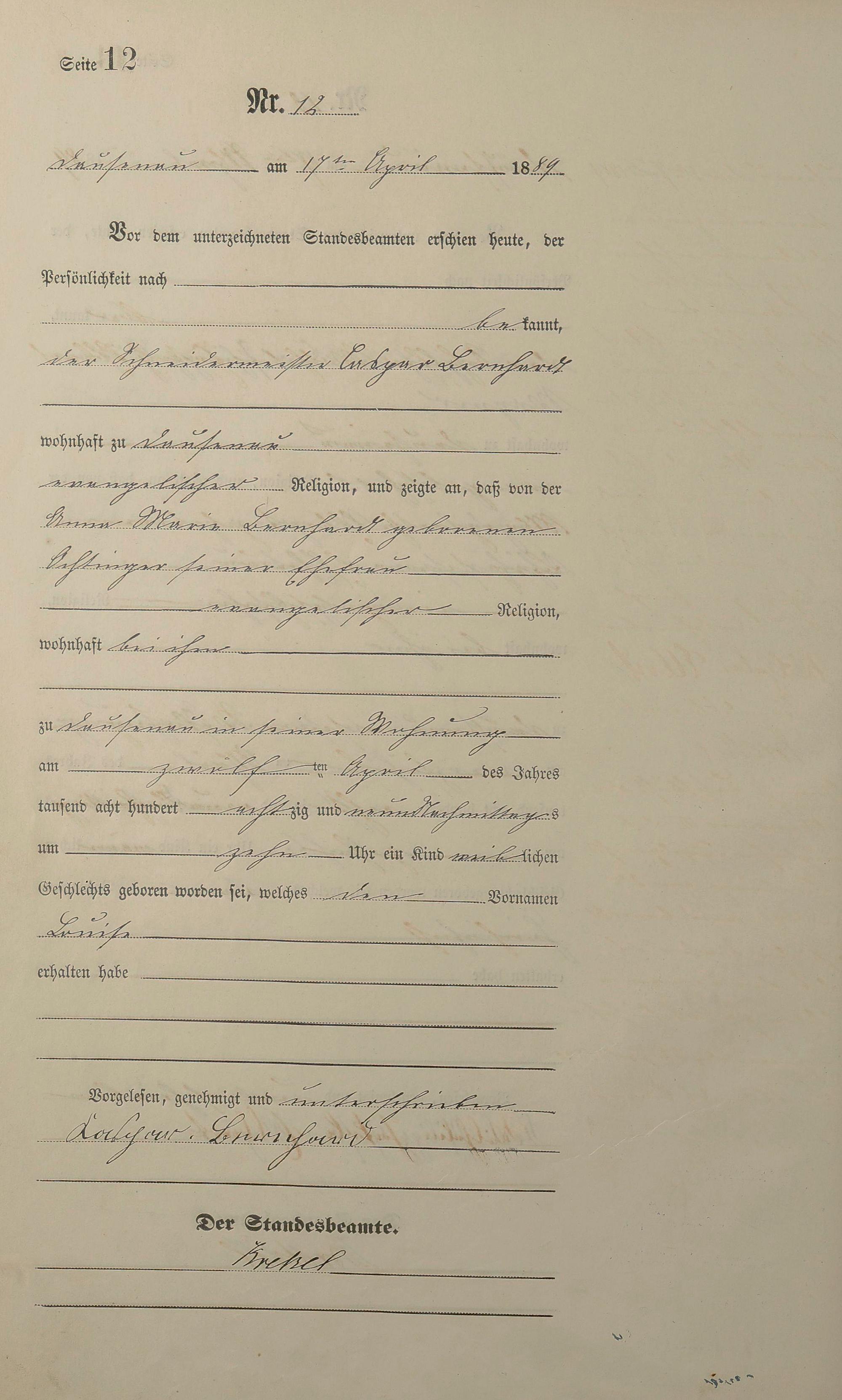 Geburtsregister 1889