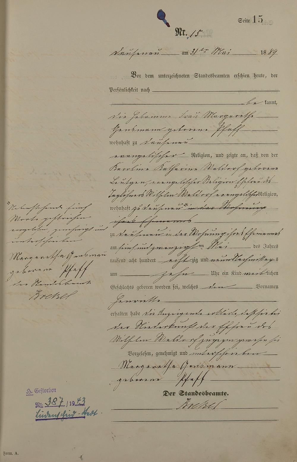 Geburtsregister 1889