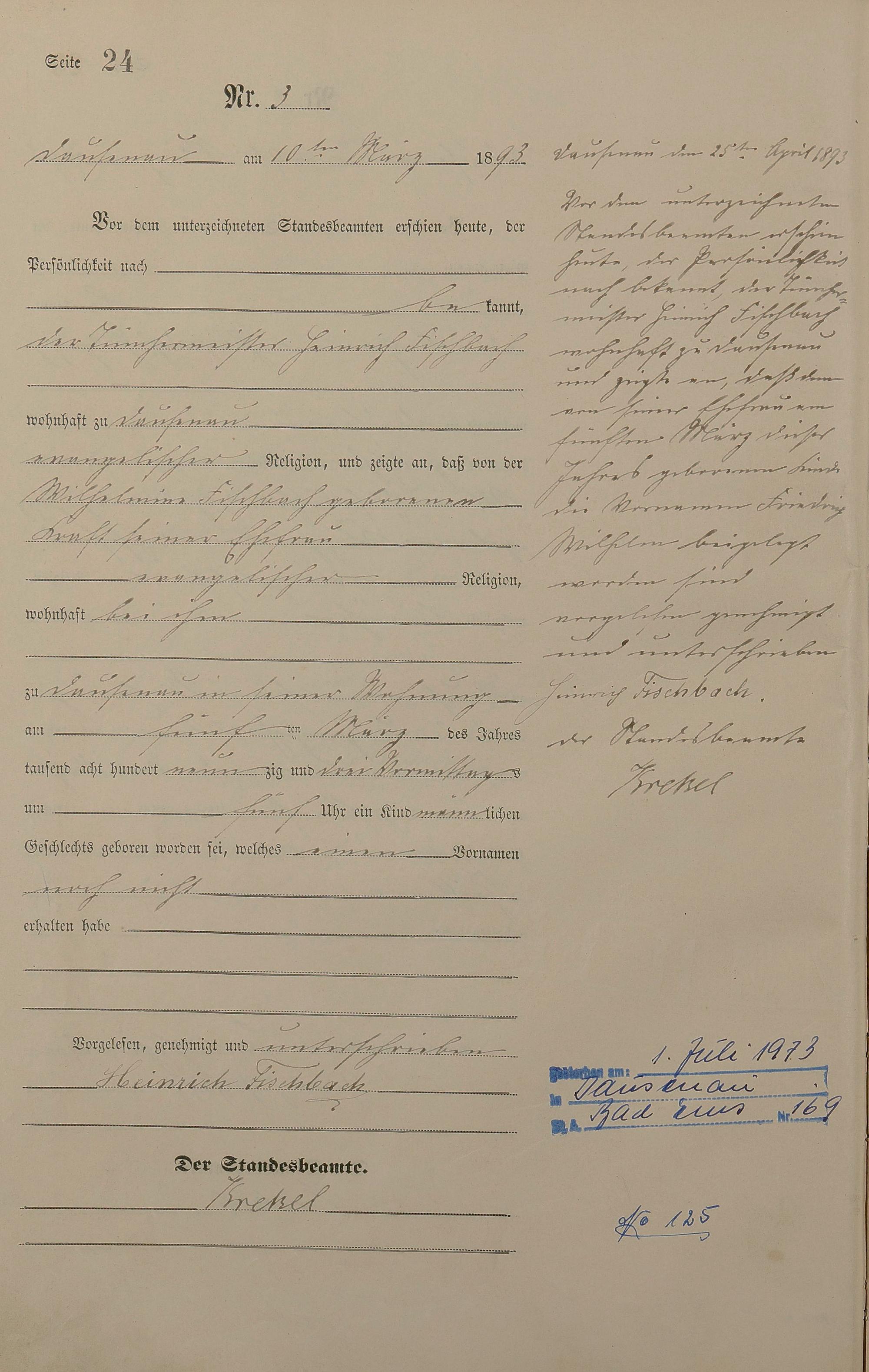 Geburtsregister 1893