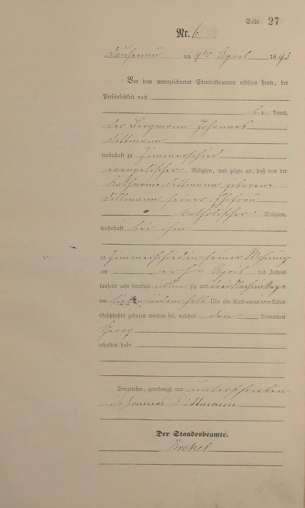 Geburtsregister 1893