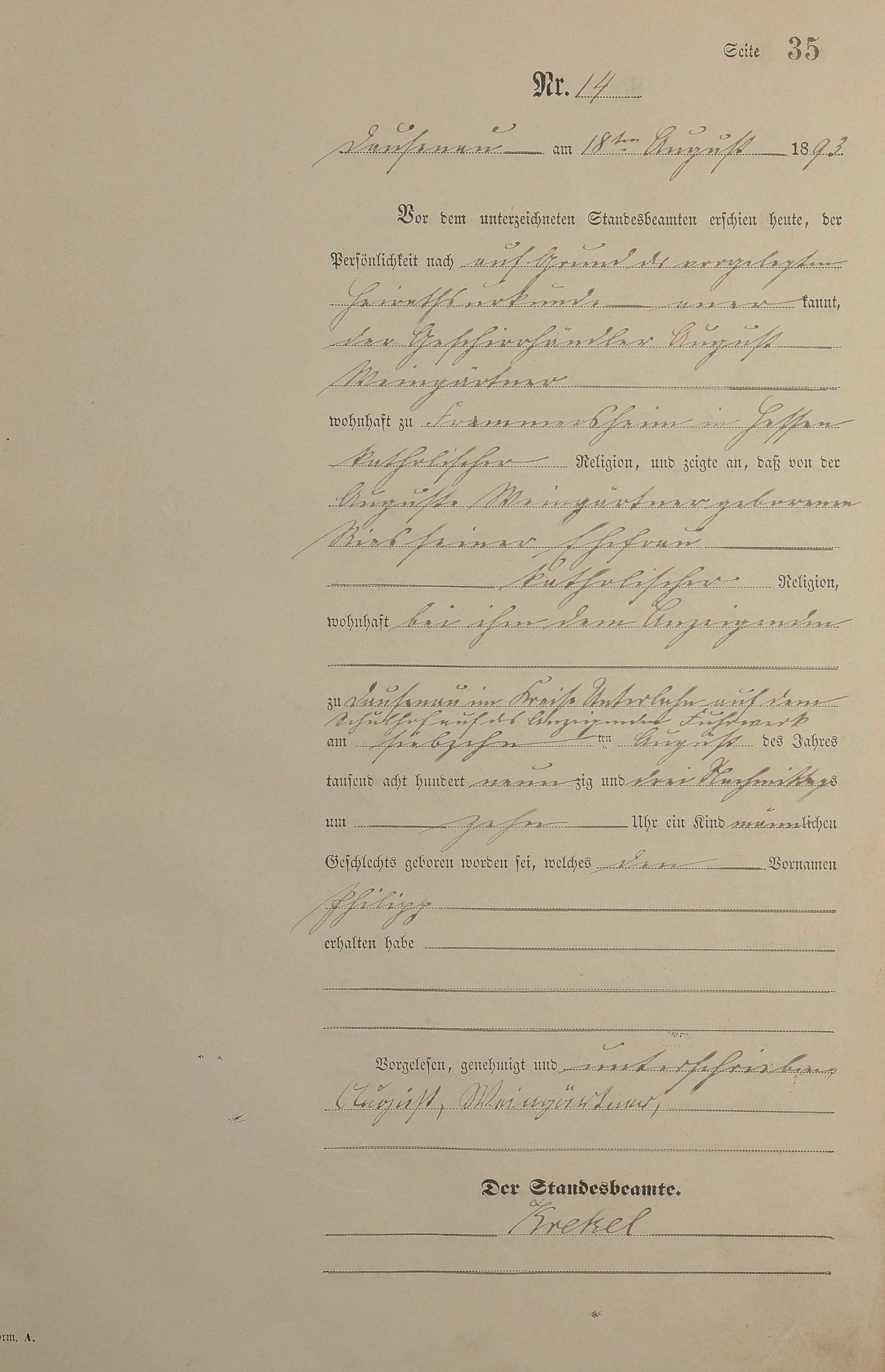 Geburtsregister 1893