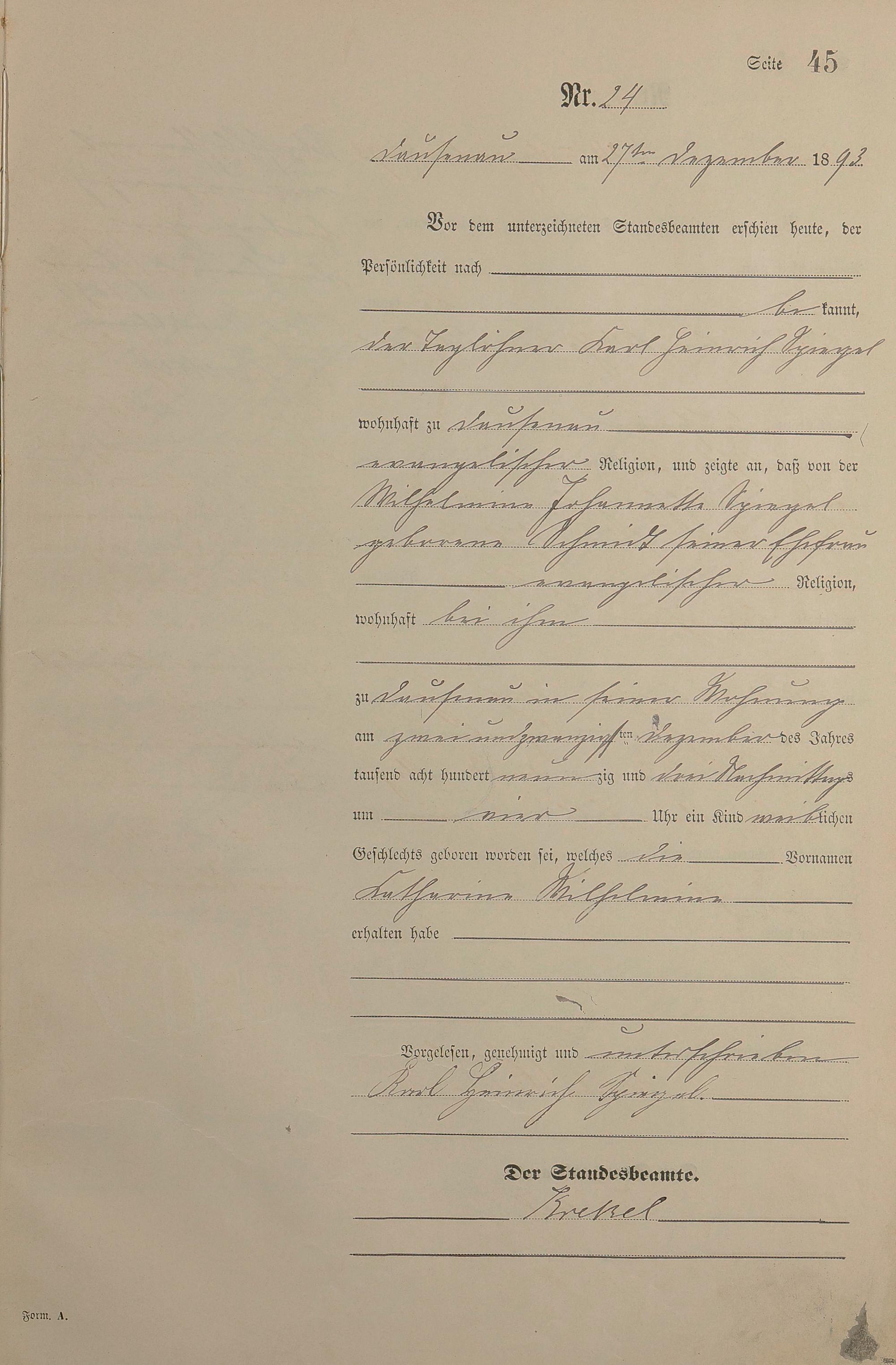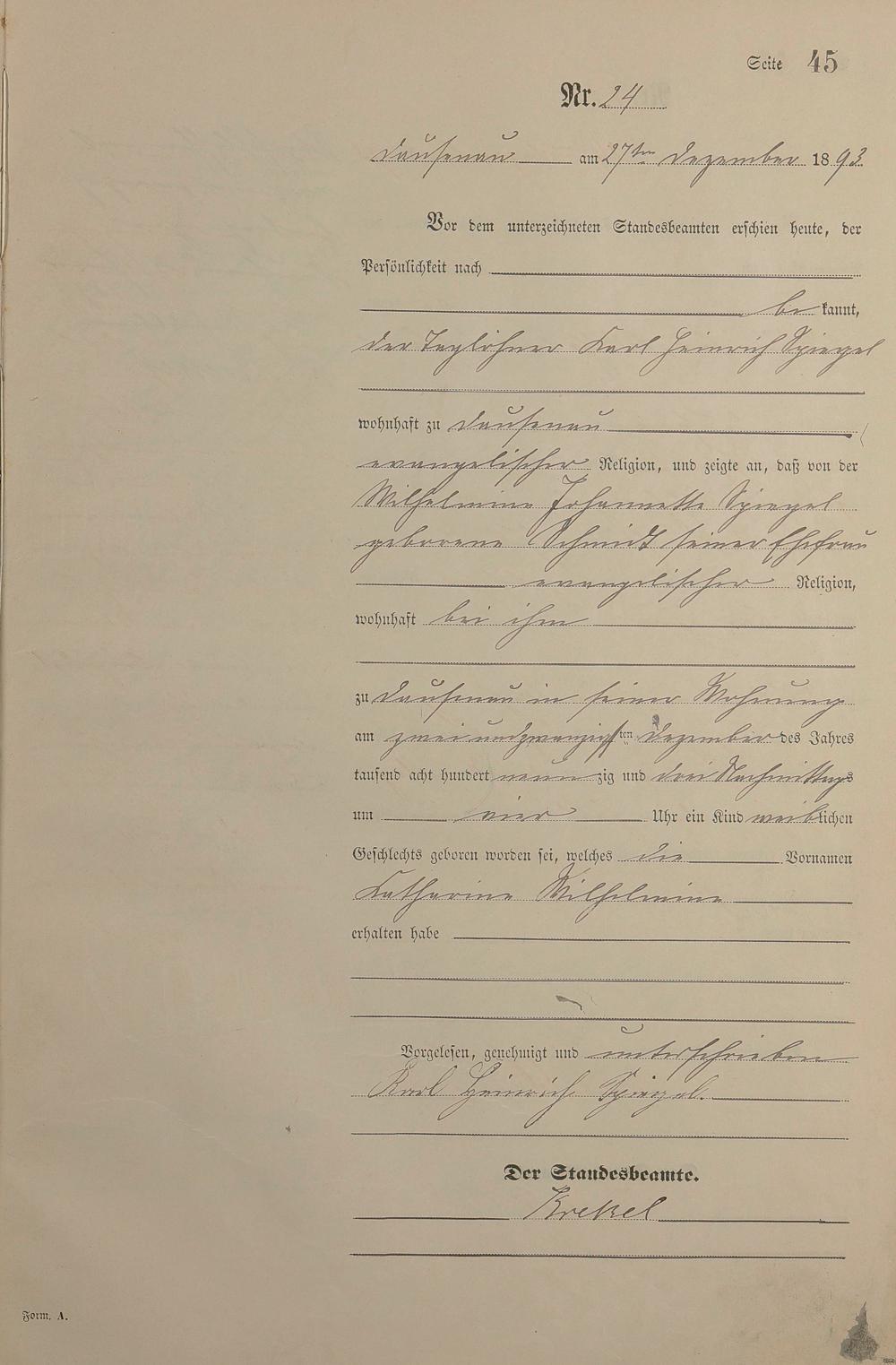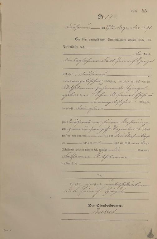 Geburtsregister 1893