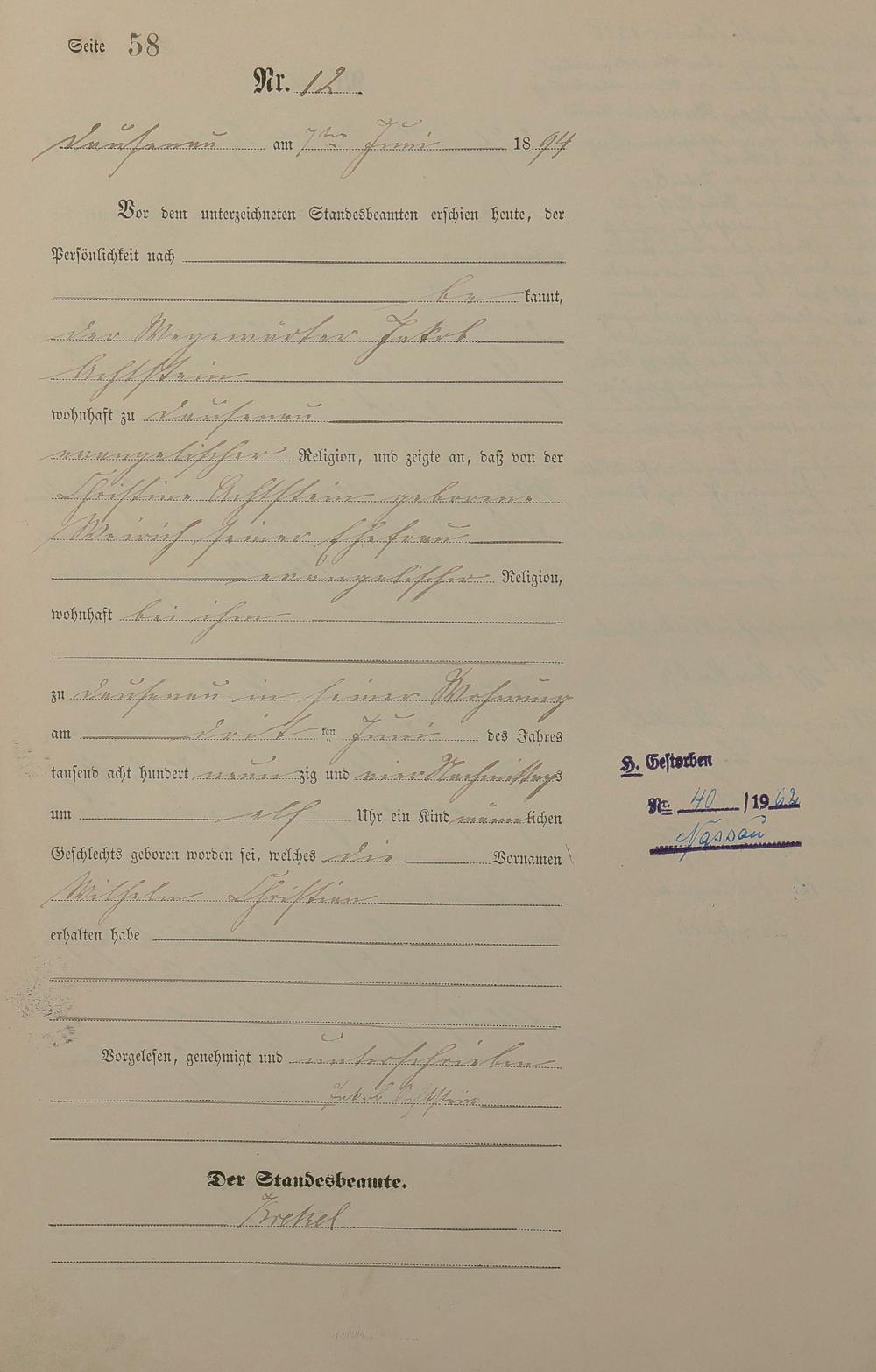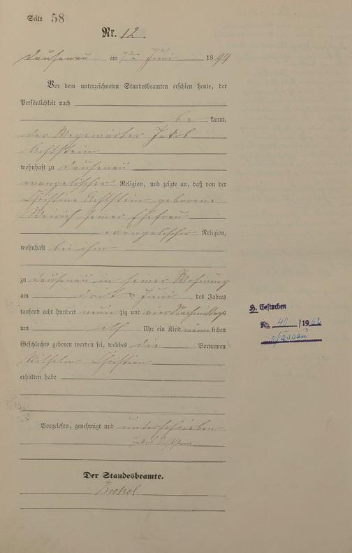 Geburtsregister 1894