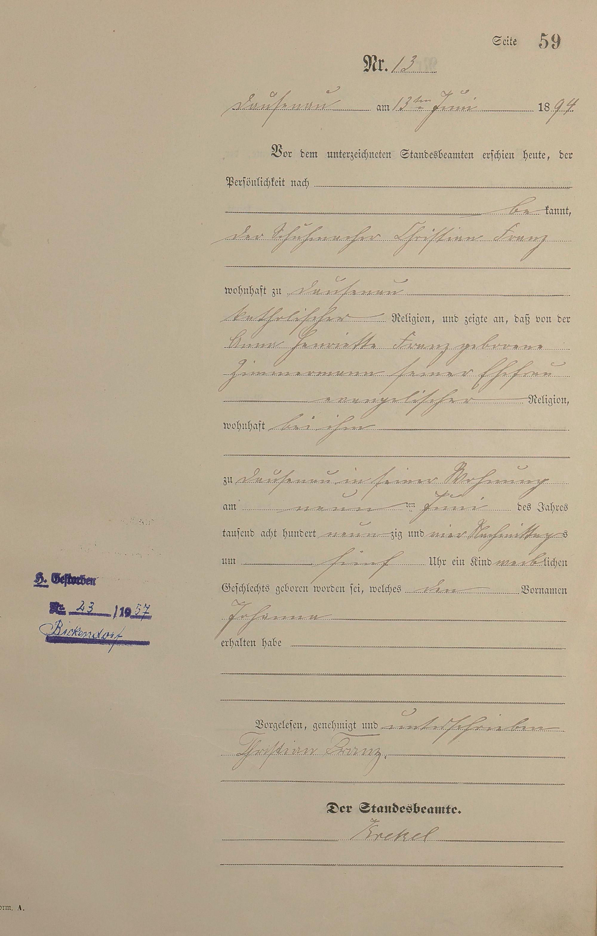Geburtsregister 1894