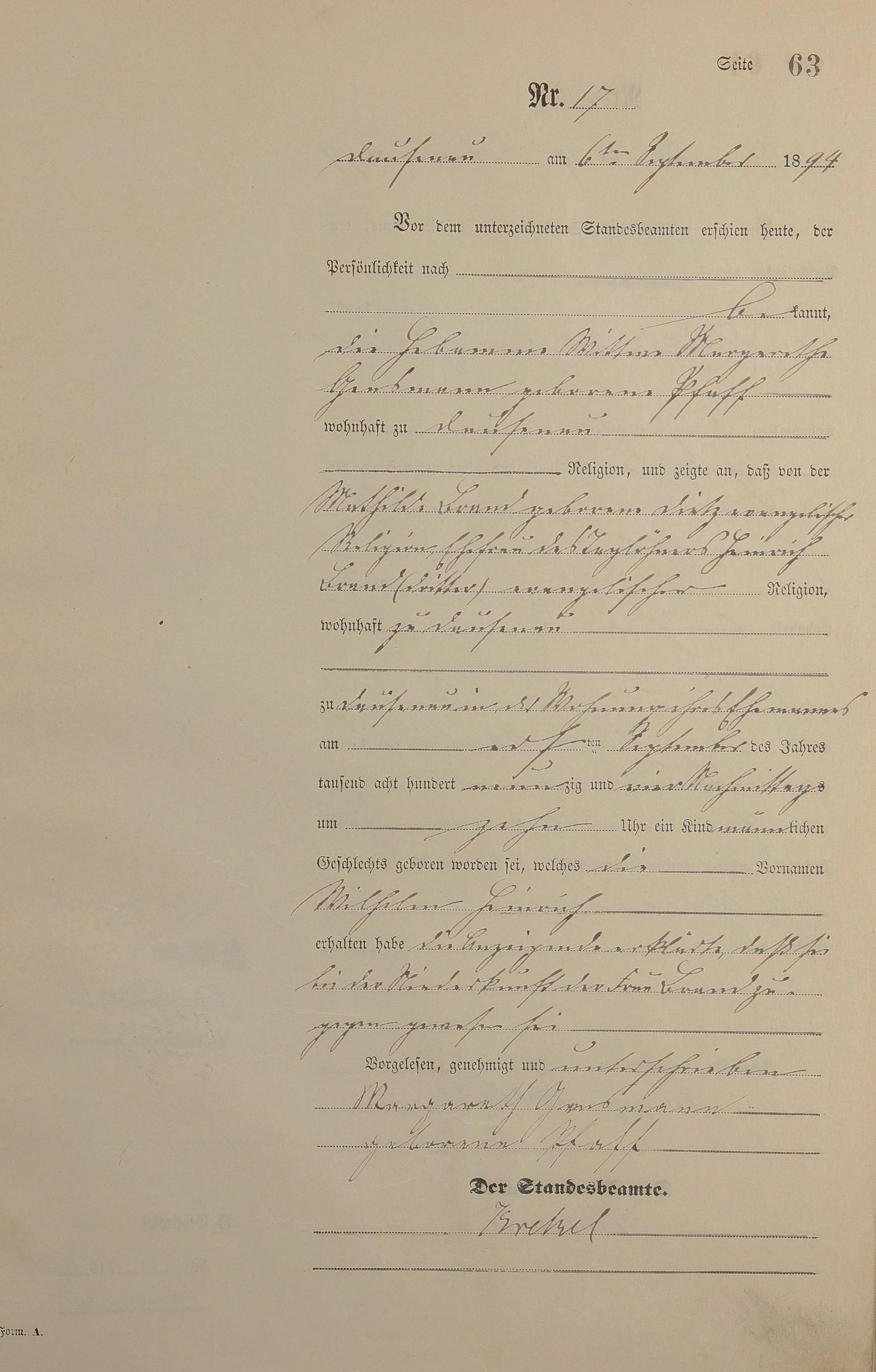 Geburtsregister 1894