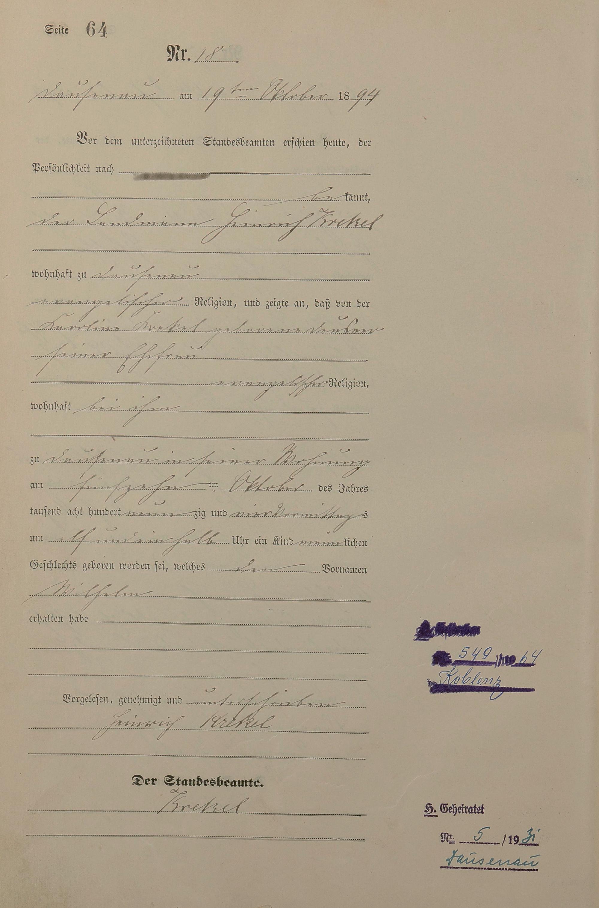 Geburtsregister 1894