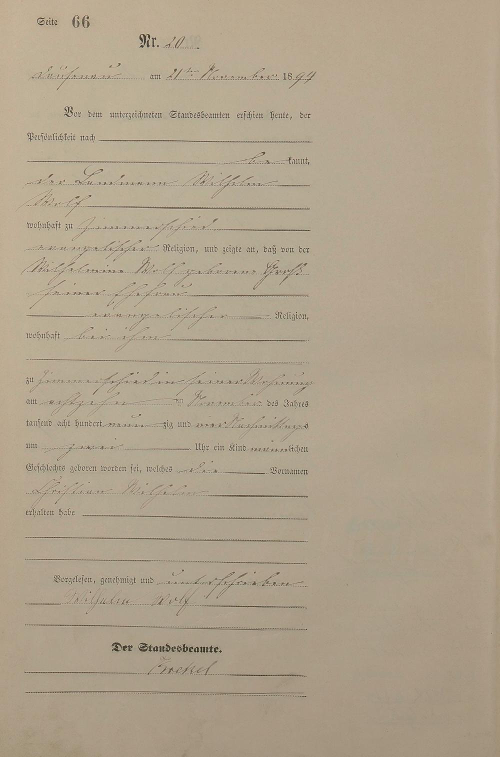 Geburtsregister 1894
