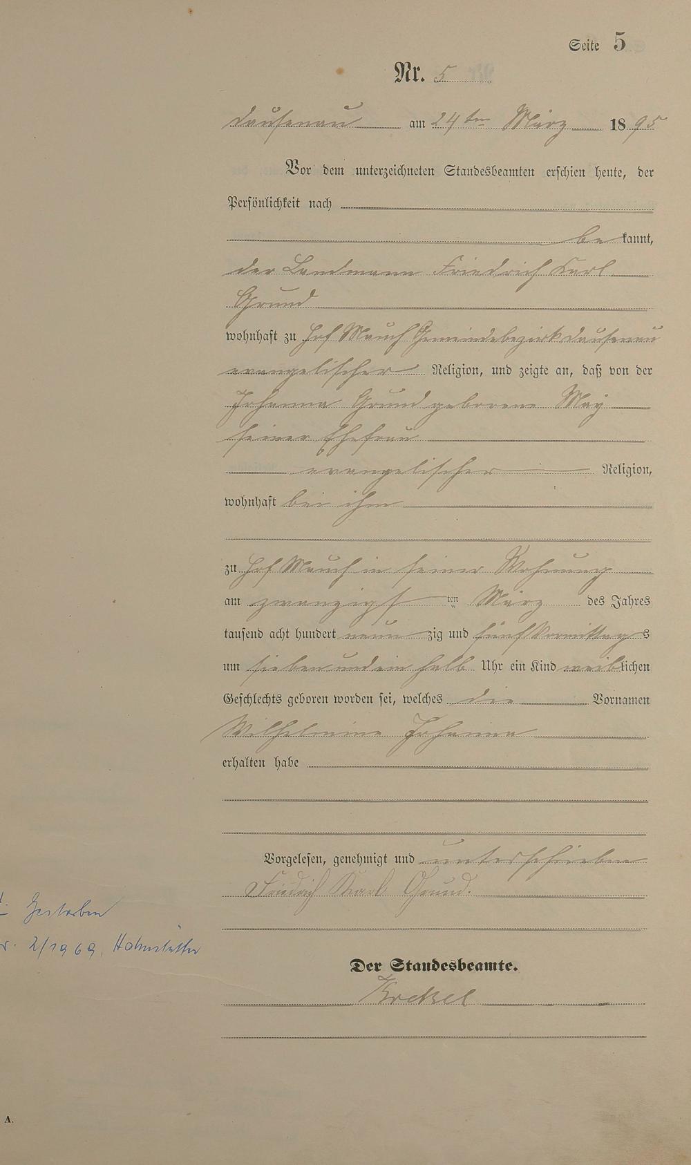 Geburtsregister 1895