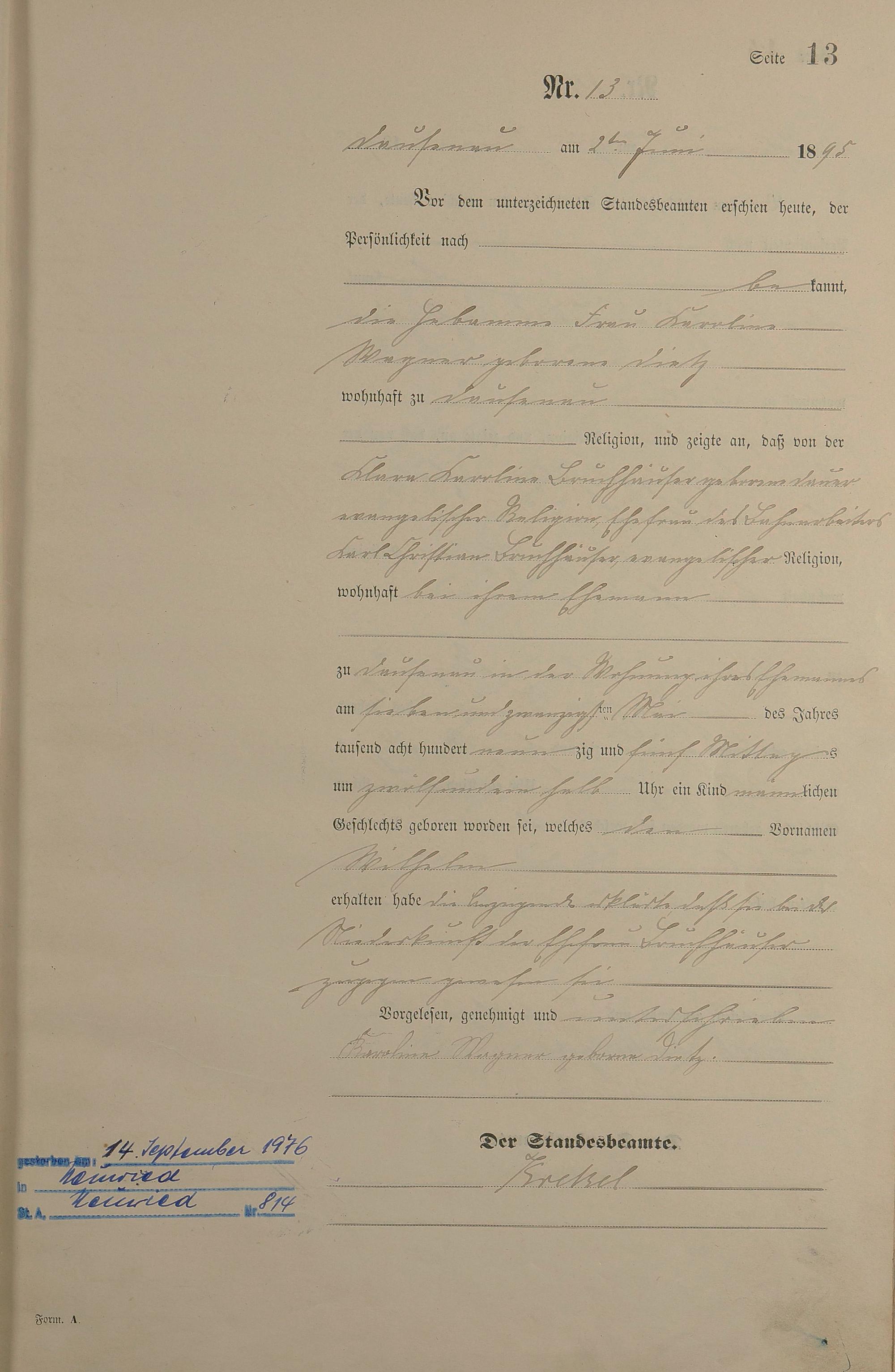 Geburtsregister 1895