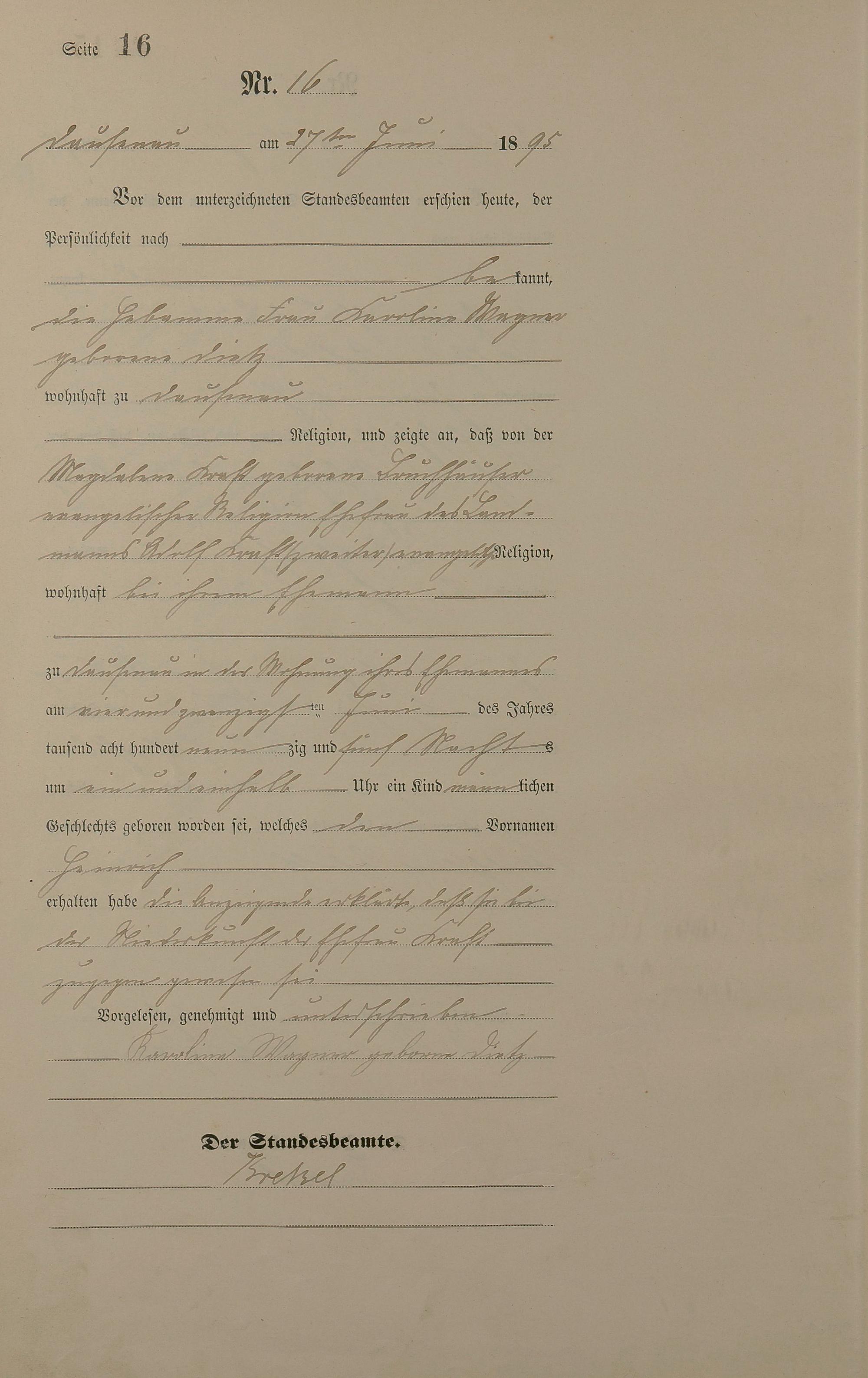 Geburtsregister 1895