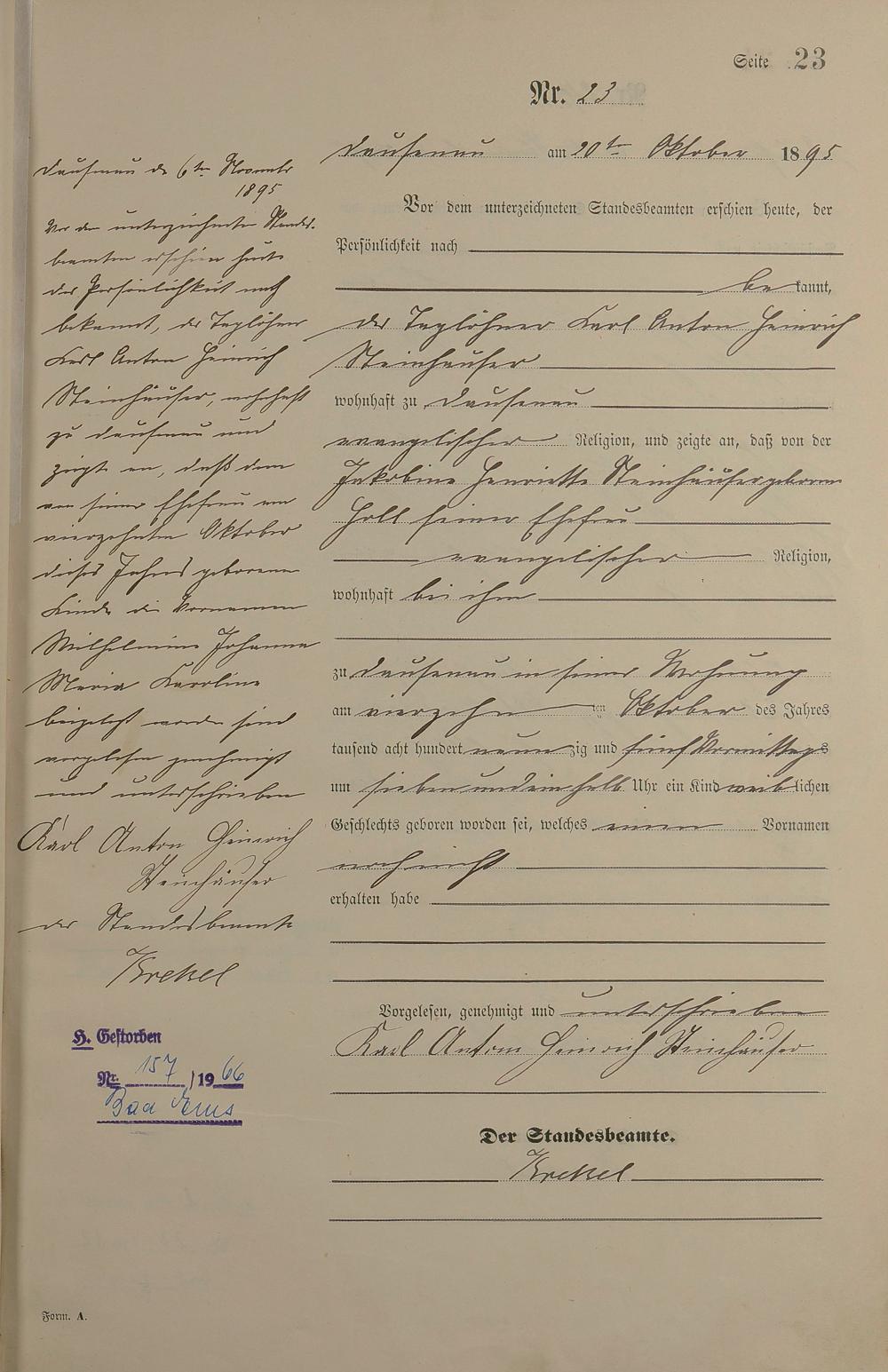 Geburtsregister 1895