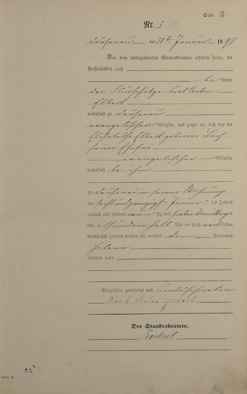 2001/11: Geburtsregister 1897