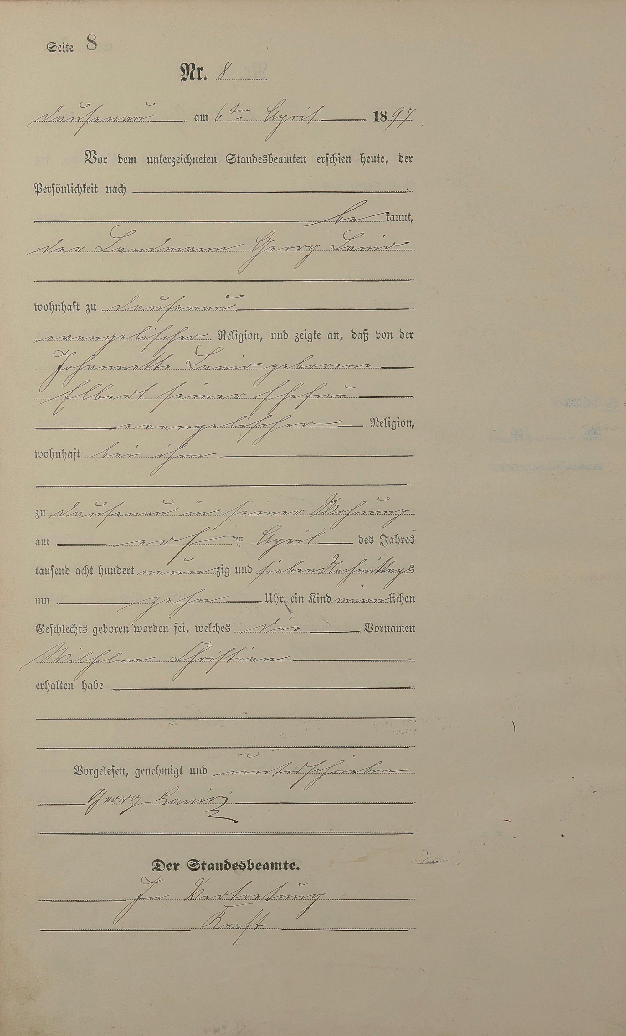 Geburtsregister 1897