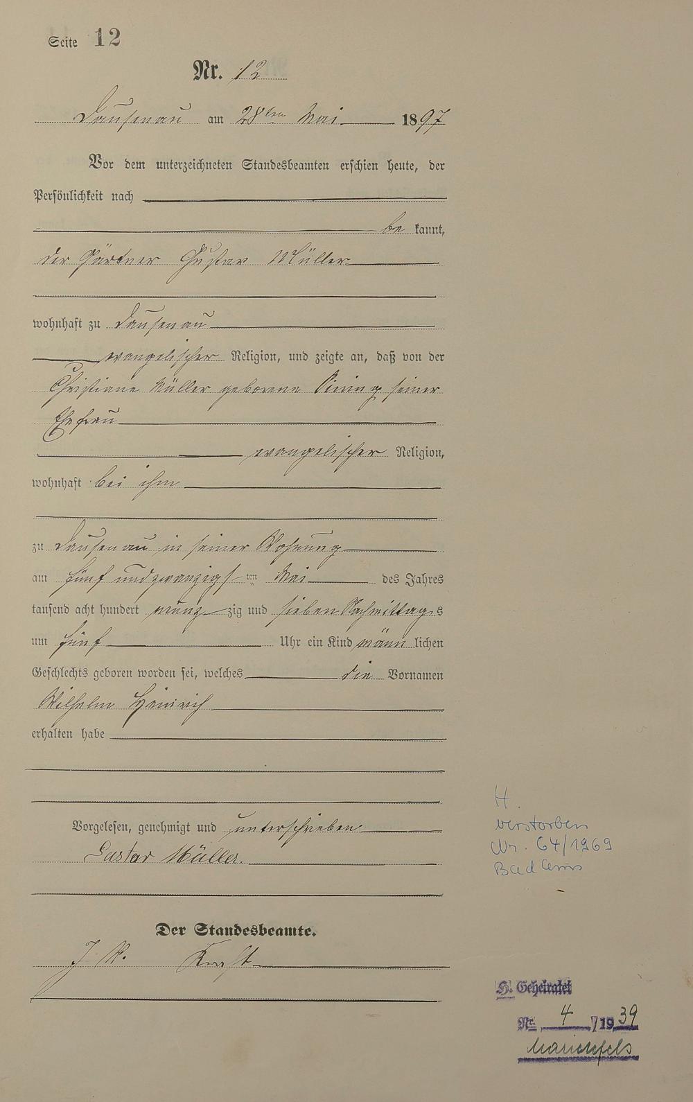 Geburtsregister 1897