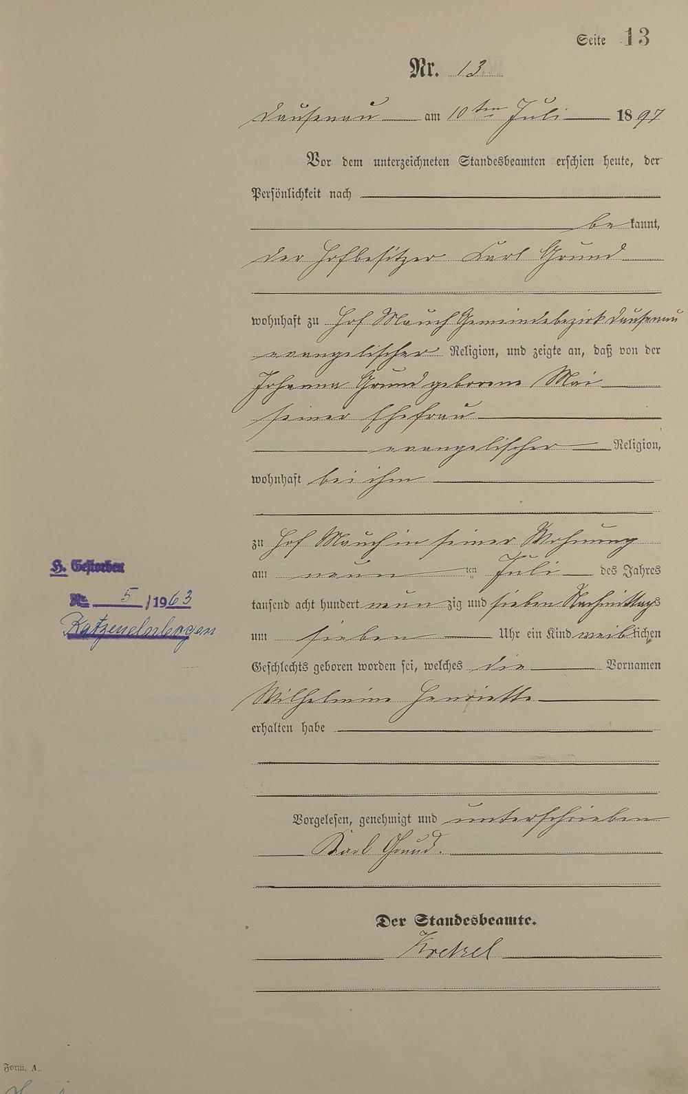 Geburtsregister 1897