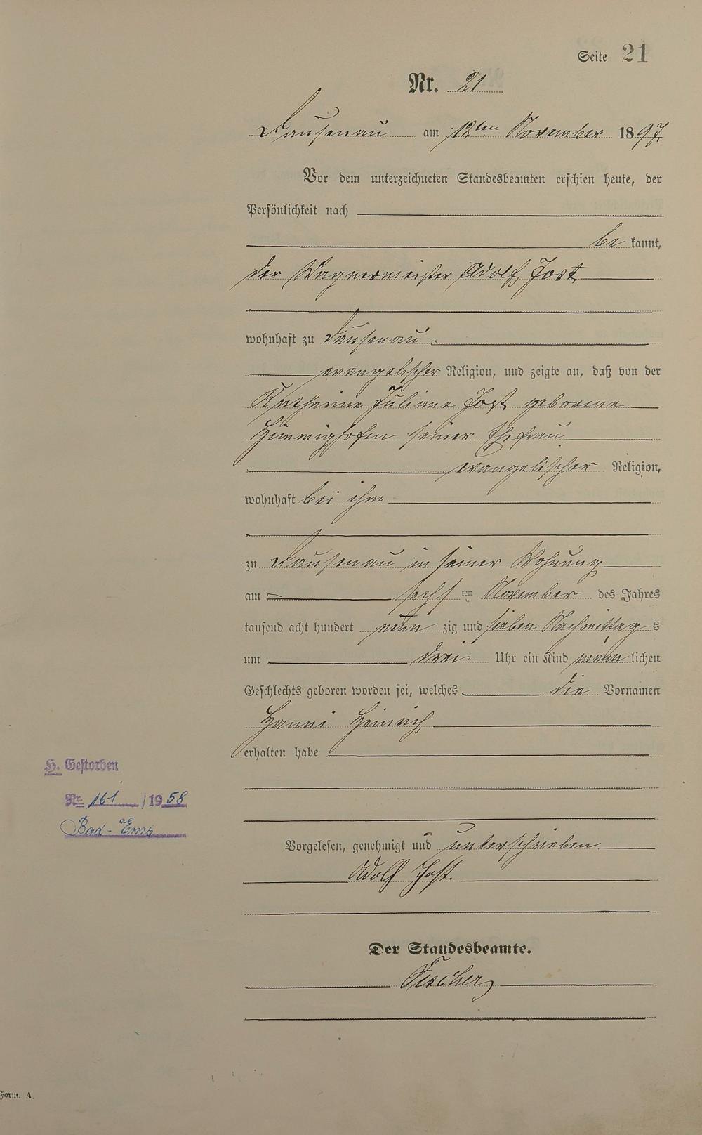 Geburtsregister 1897