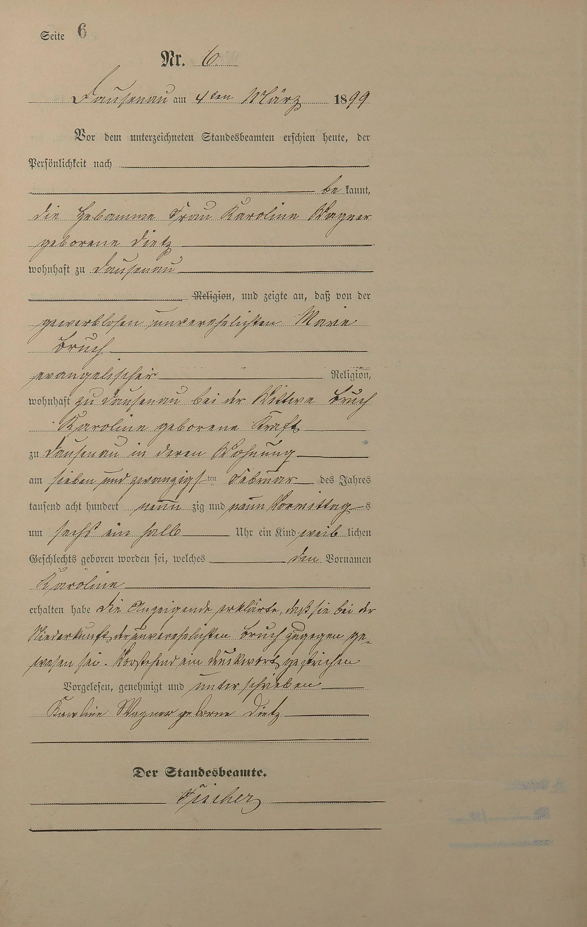 Geburtsregister 1899
