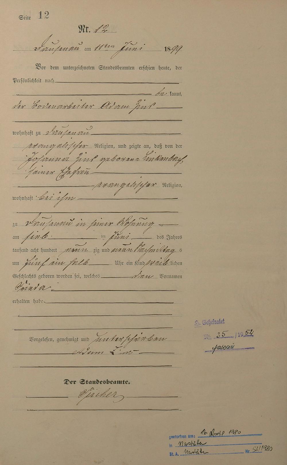 Geburtsregister 1899