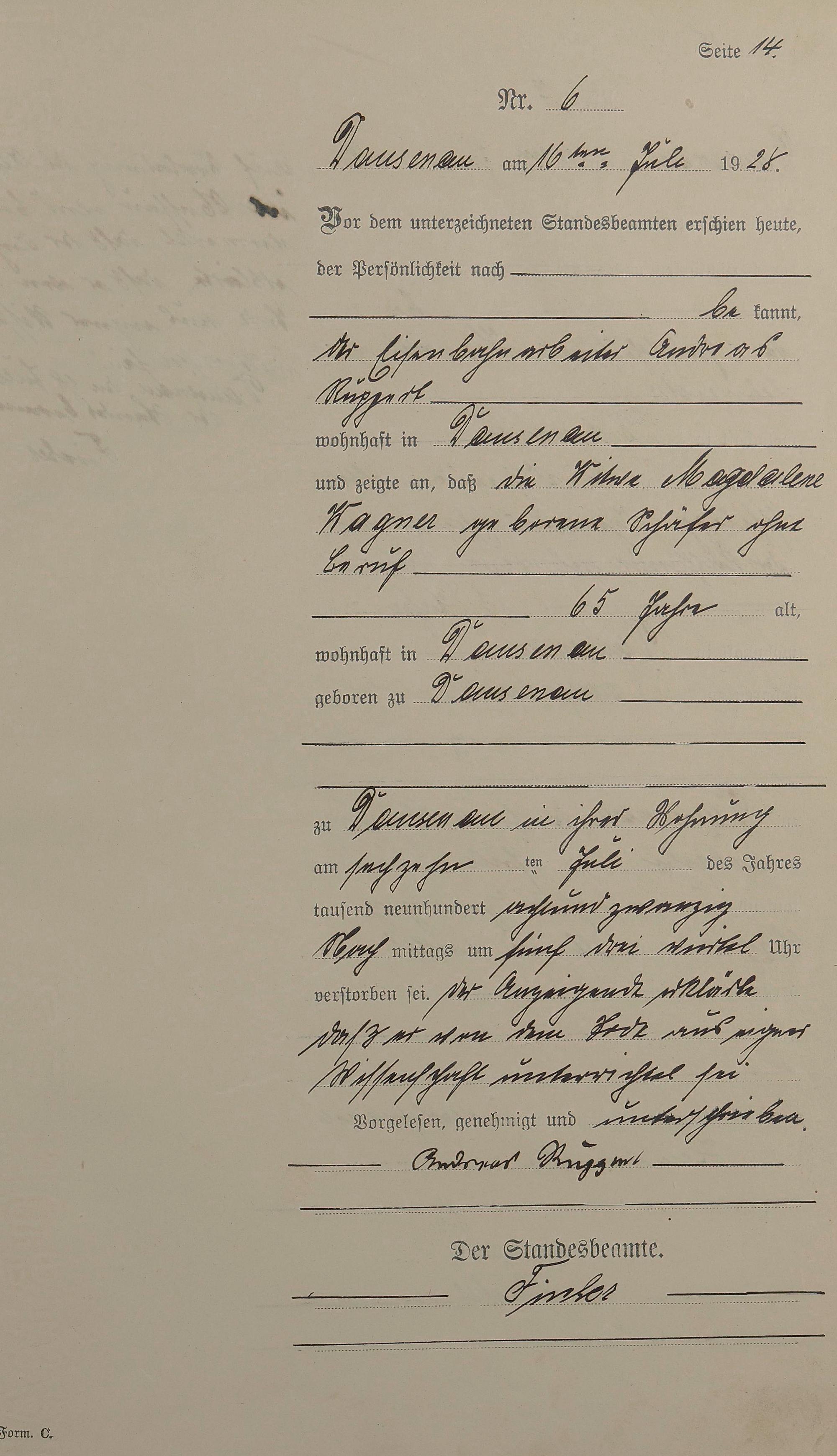 Sterberegister 1928