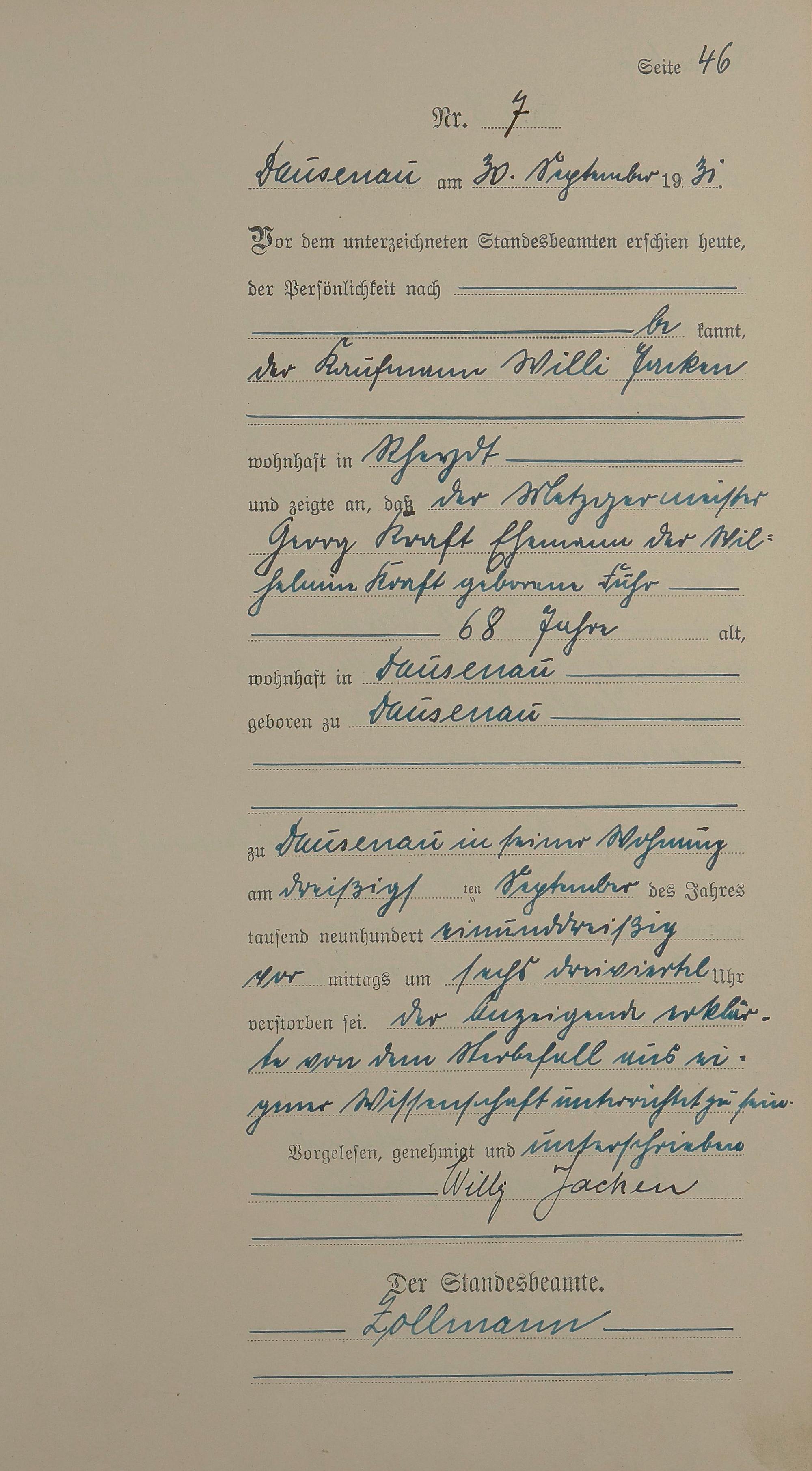 Sterberegister 1931