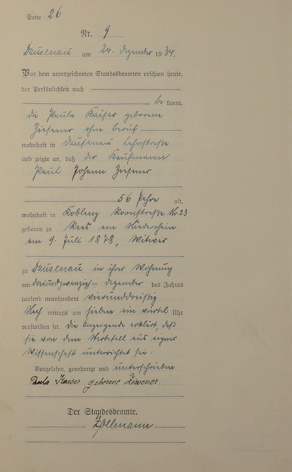 Sterberegister 1934