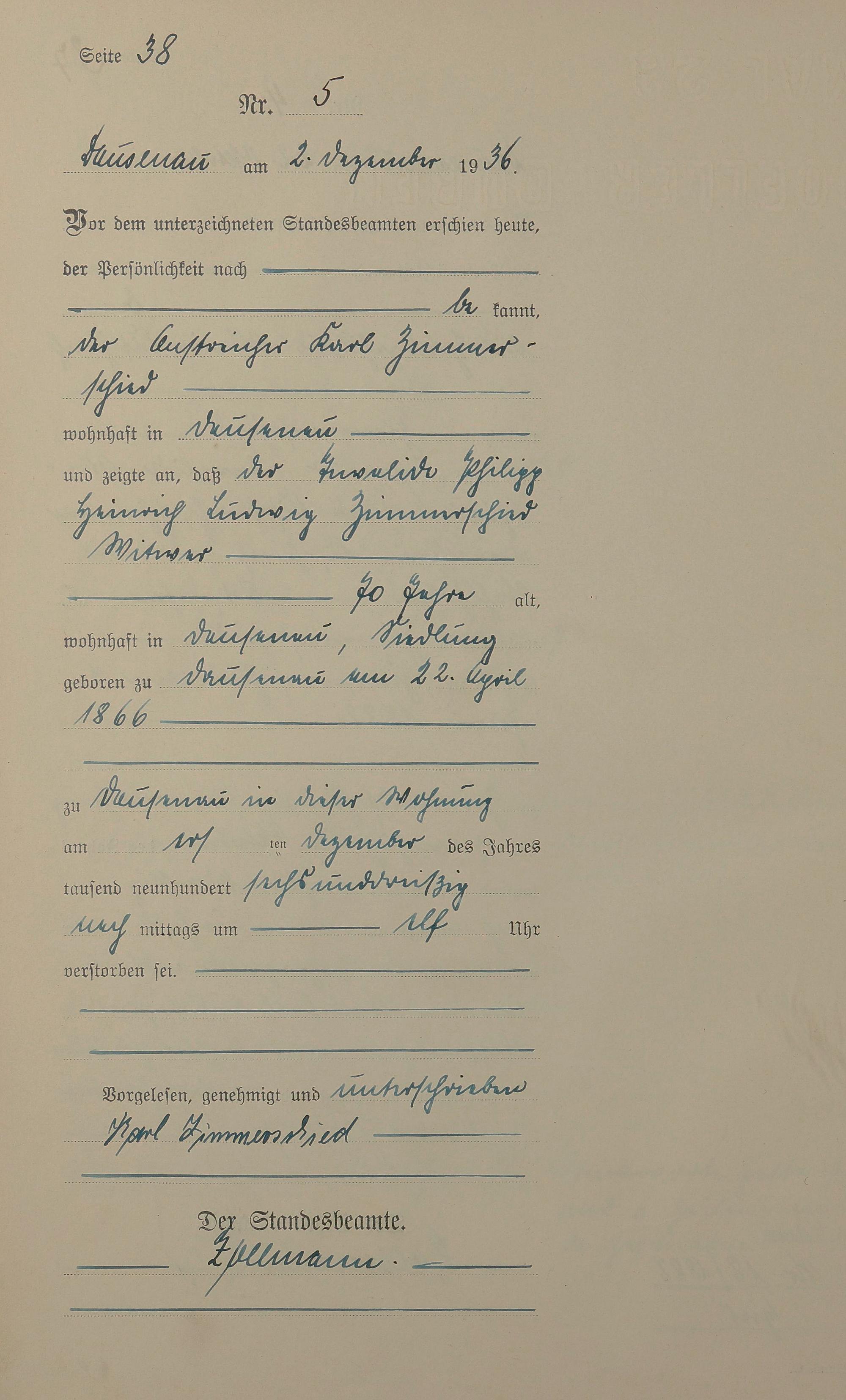 Sterberegister 1936