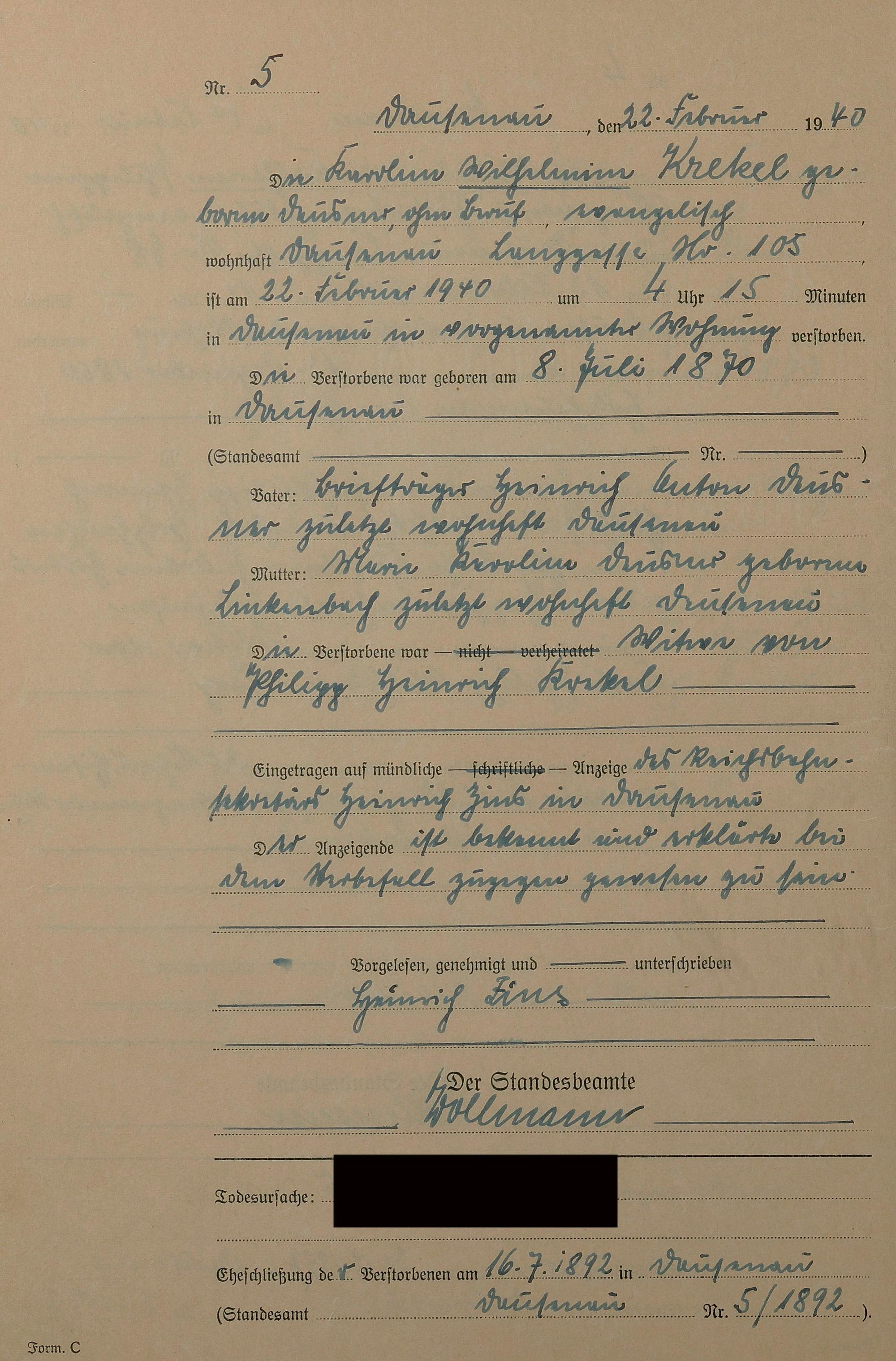 Sterberegister 1940