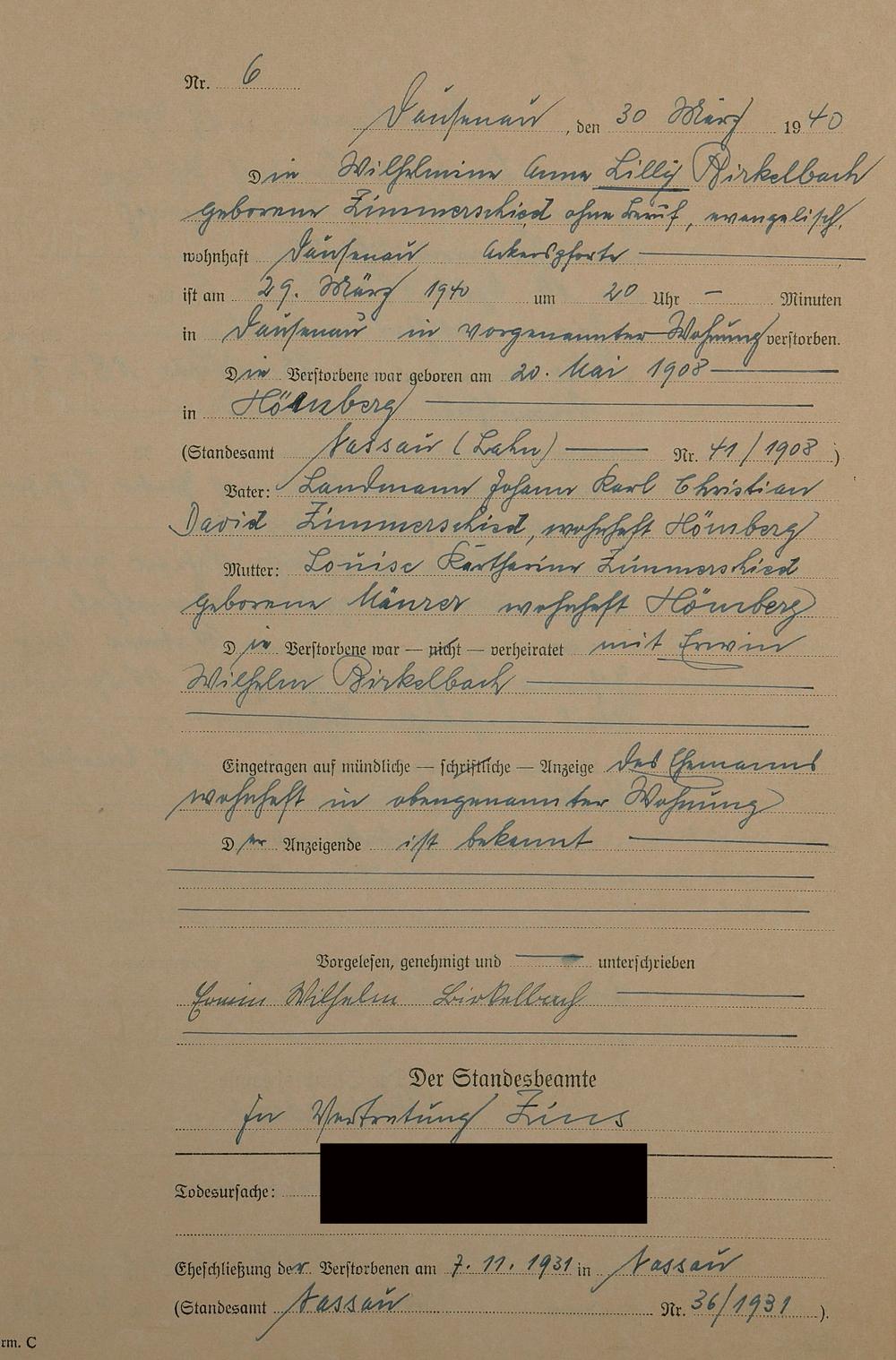 Sterberegister 1940
