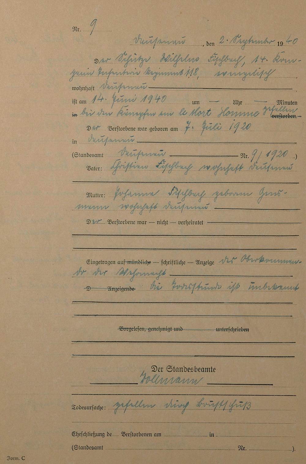 Sterberegister 1940