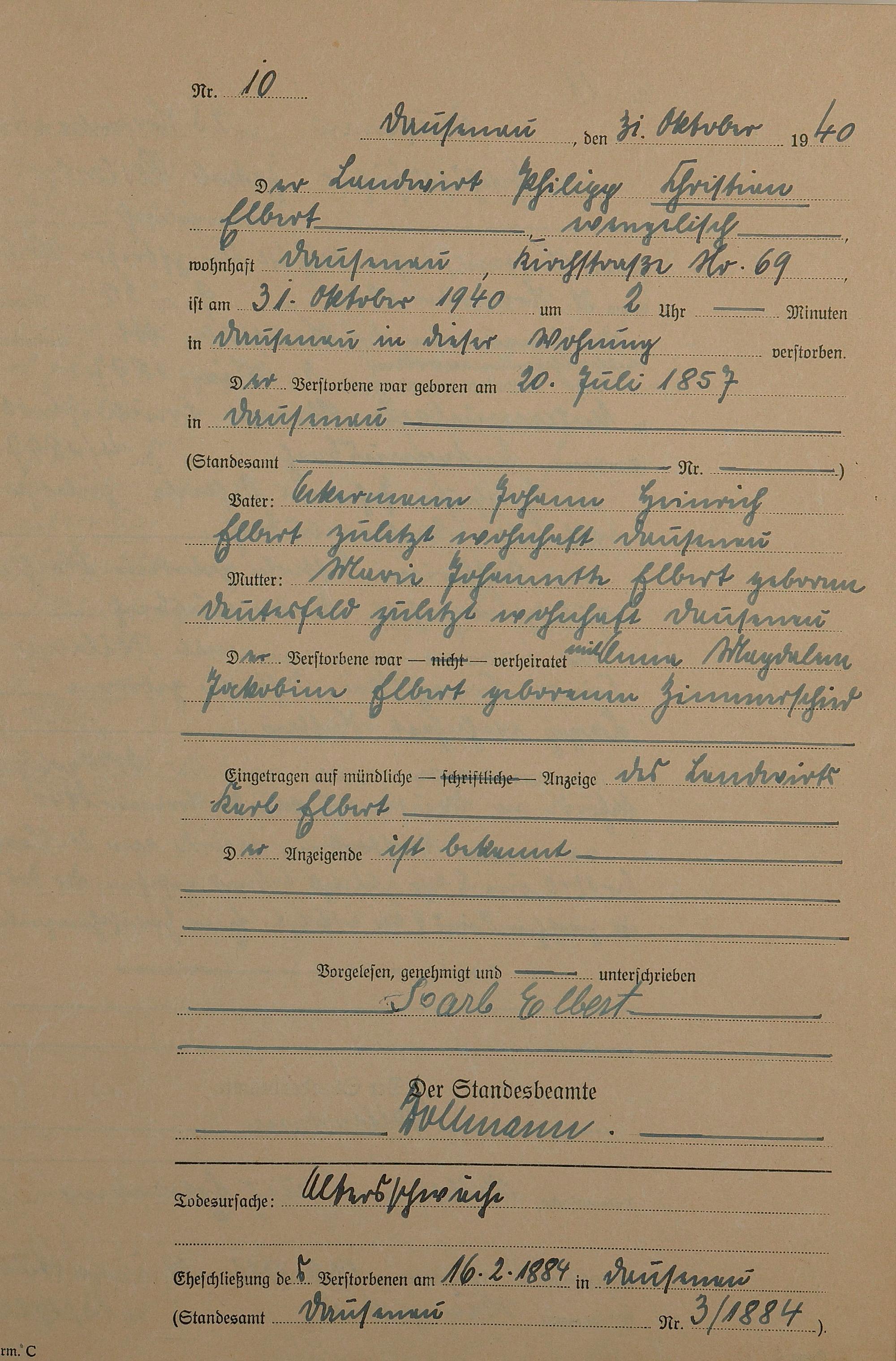 Sterberegister 1940