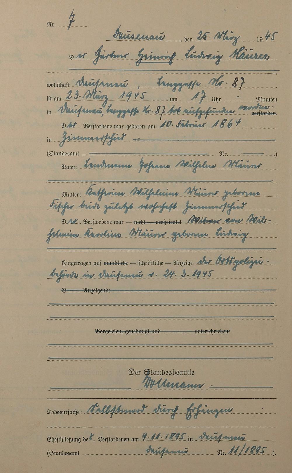 Sterberegister 1945