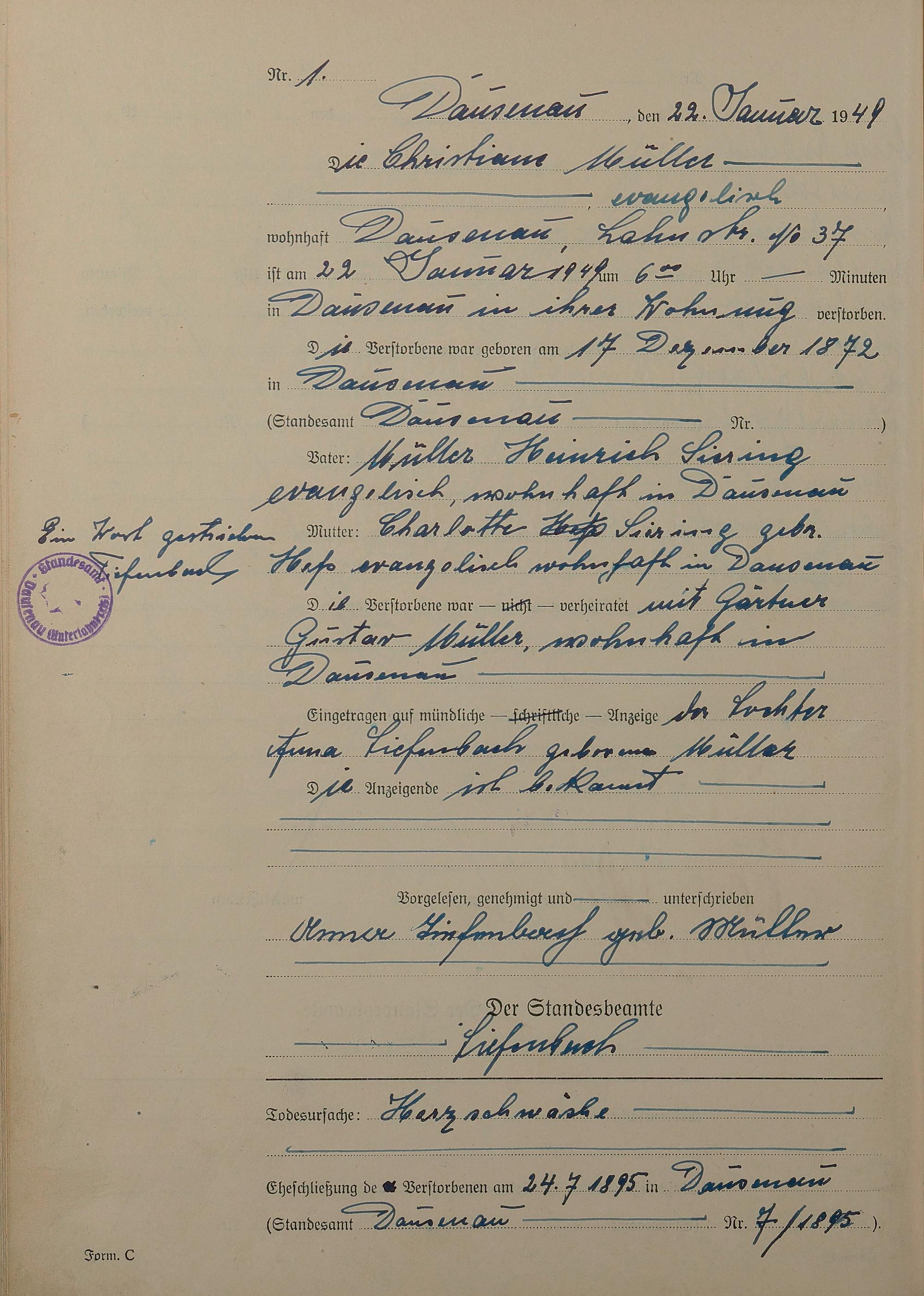 Sterberegister 1949