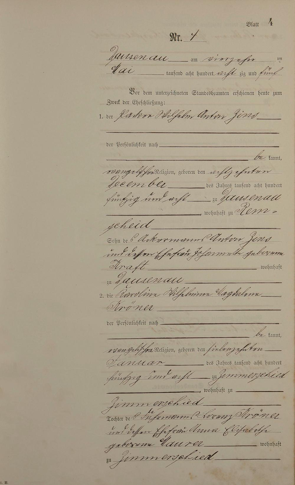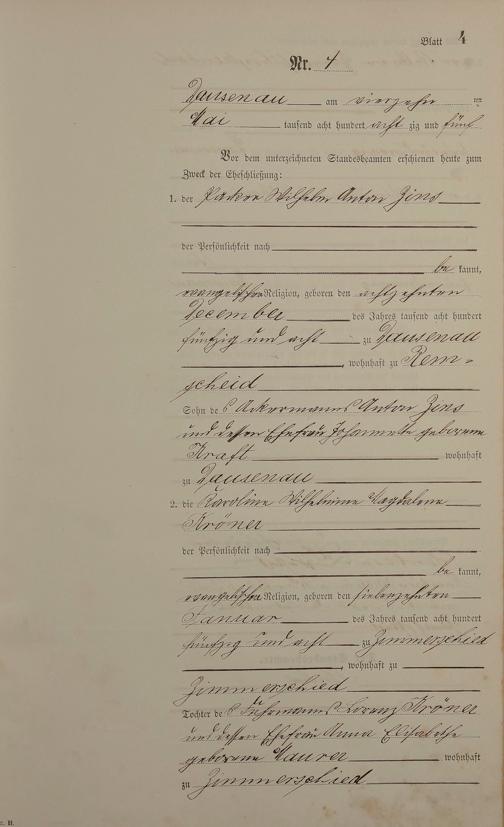 Heiratsregister 1885