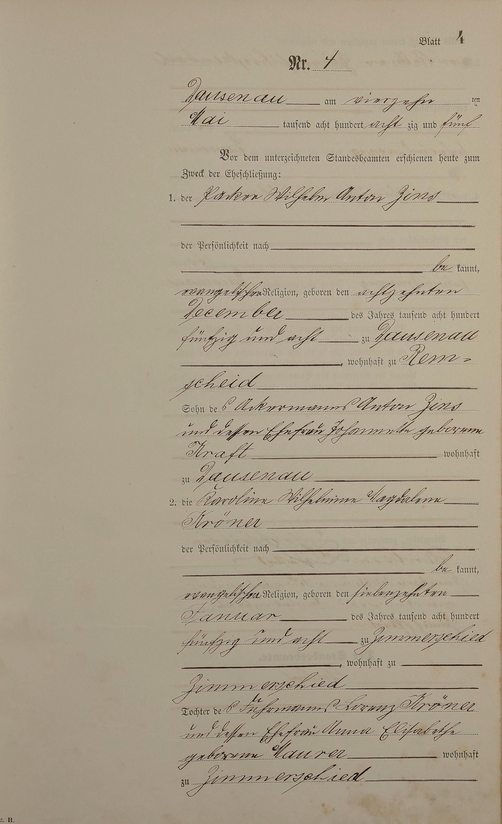 2004/12: Heiratsregister 1885
