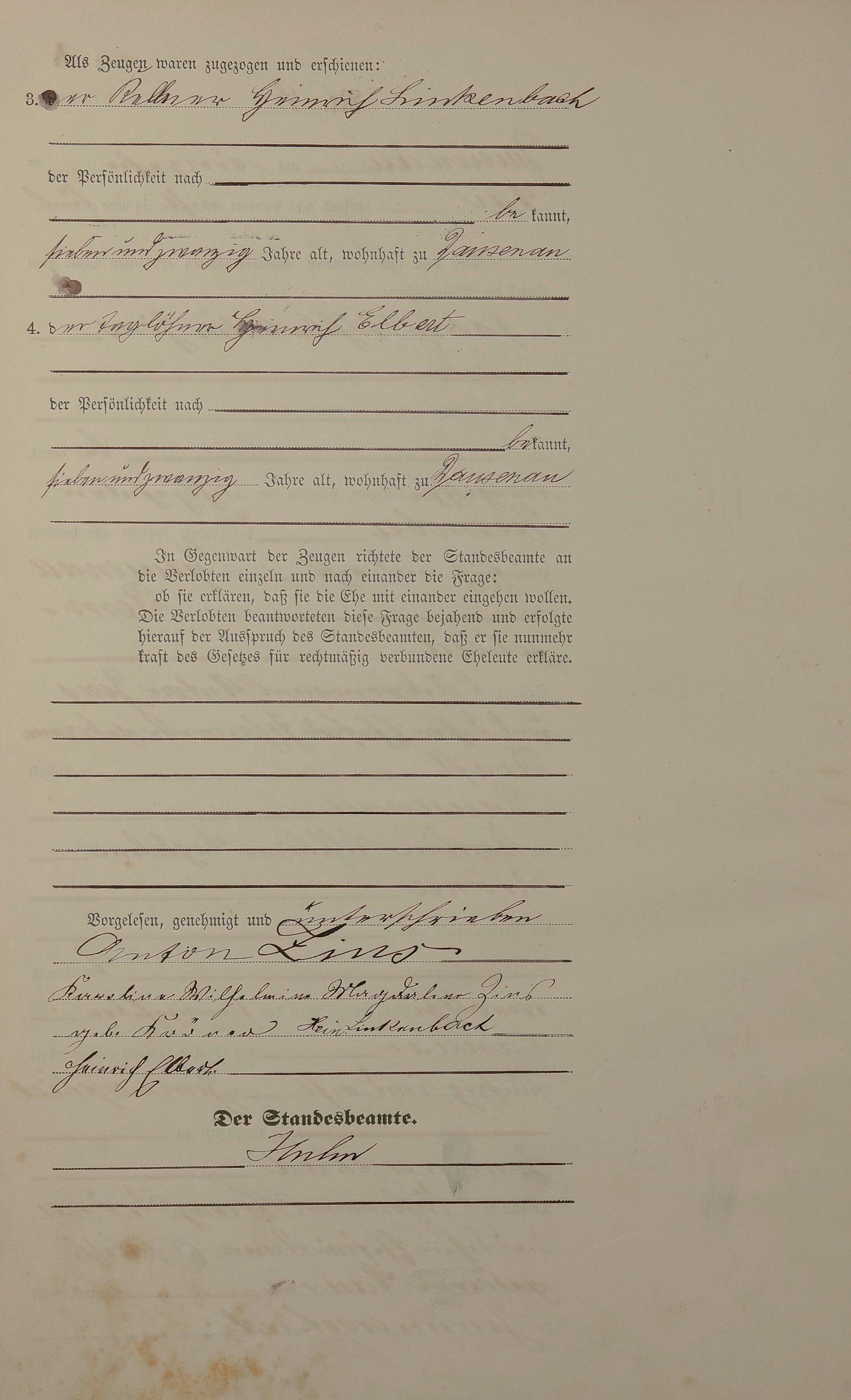 Heiratsregister 1885