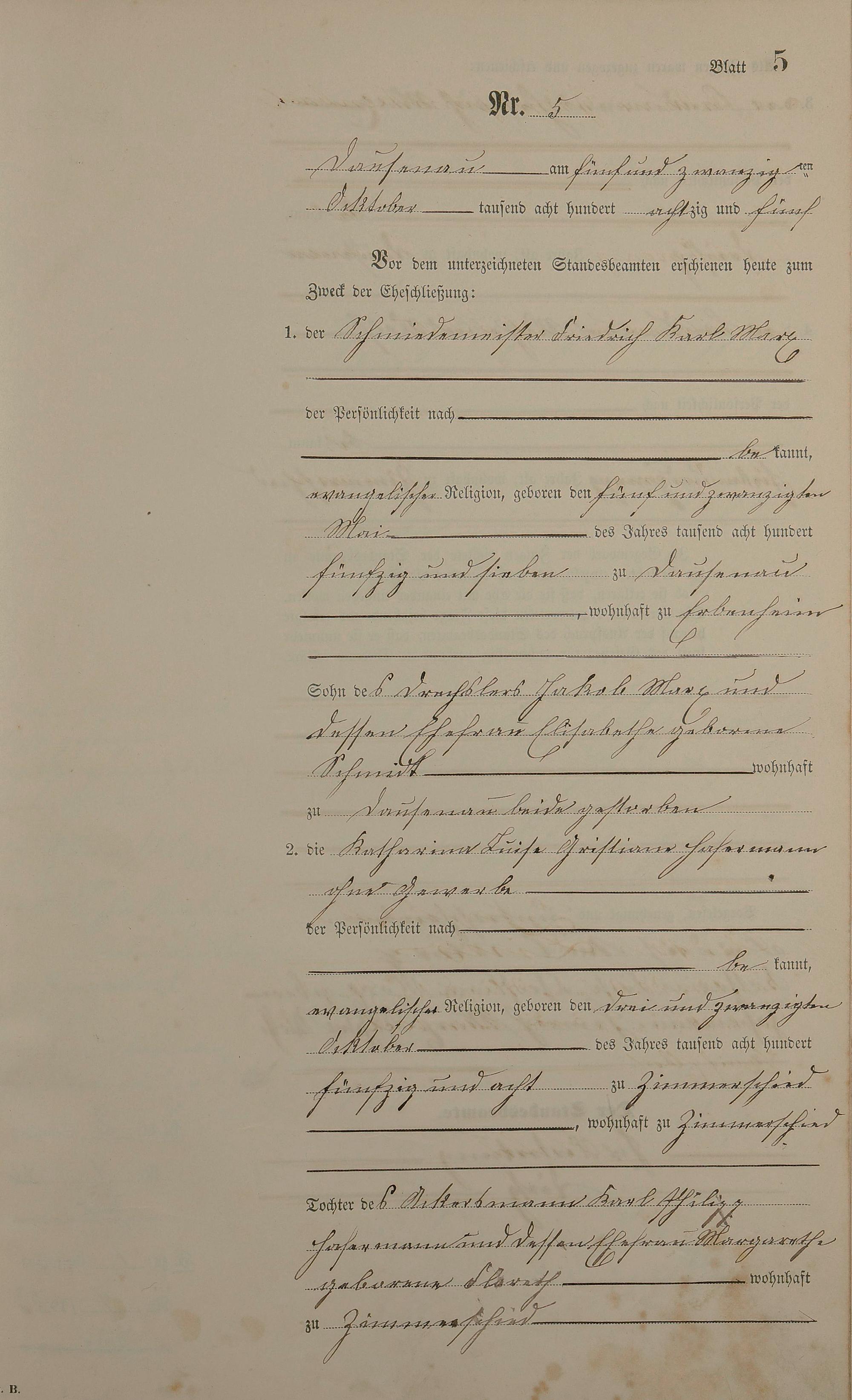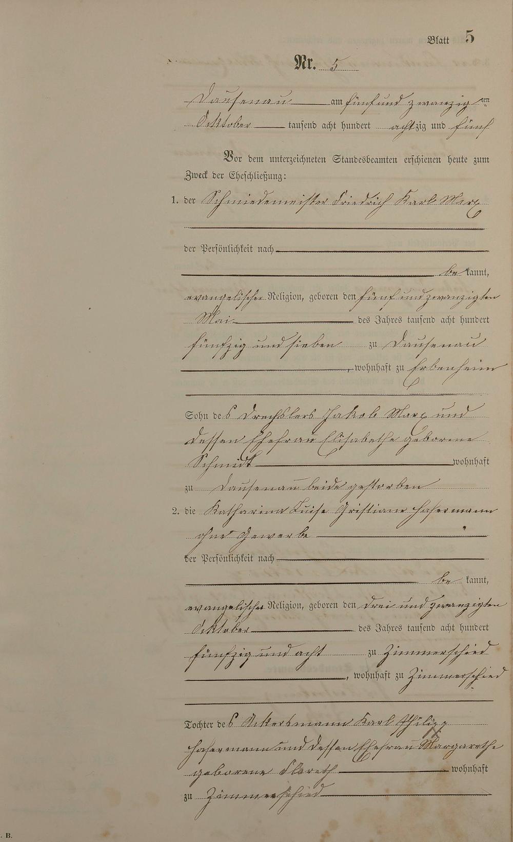 Heiratsregister 1885
