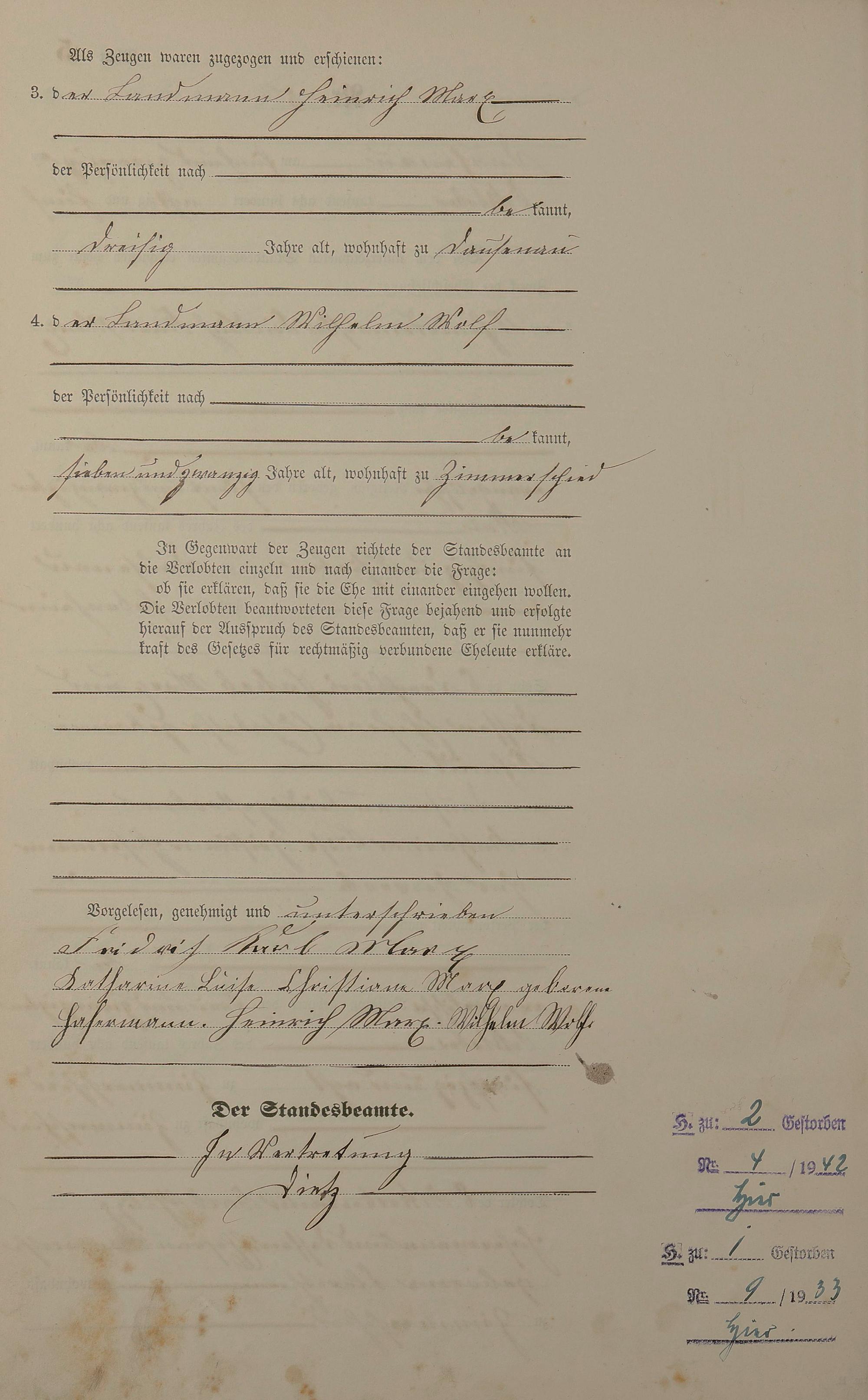 Heiratsregister 1885