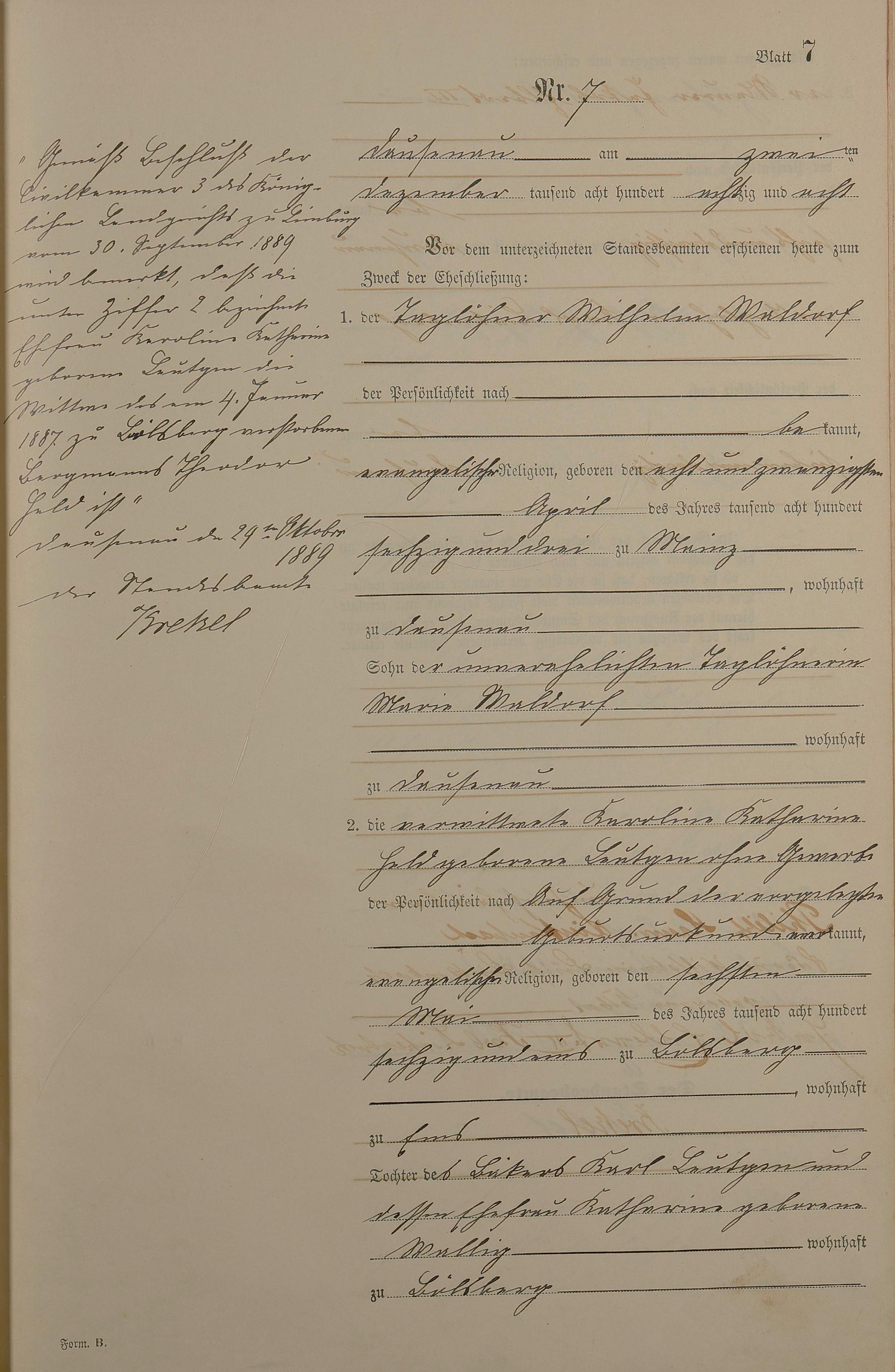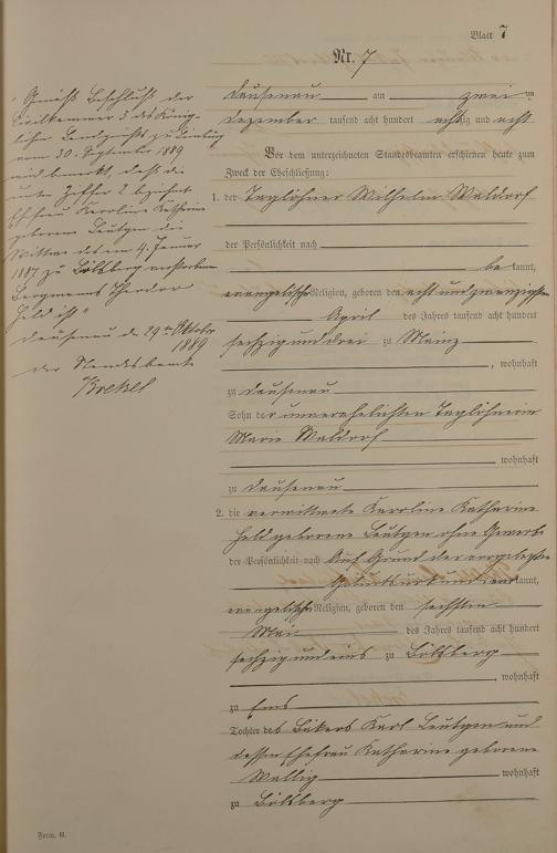 Heiratsregister 1888
