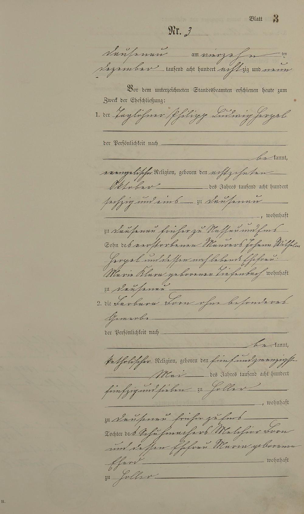 Heiratsregister 1889