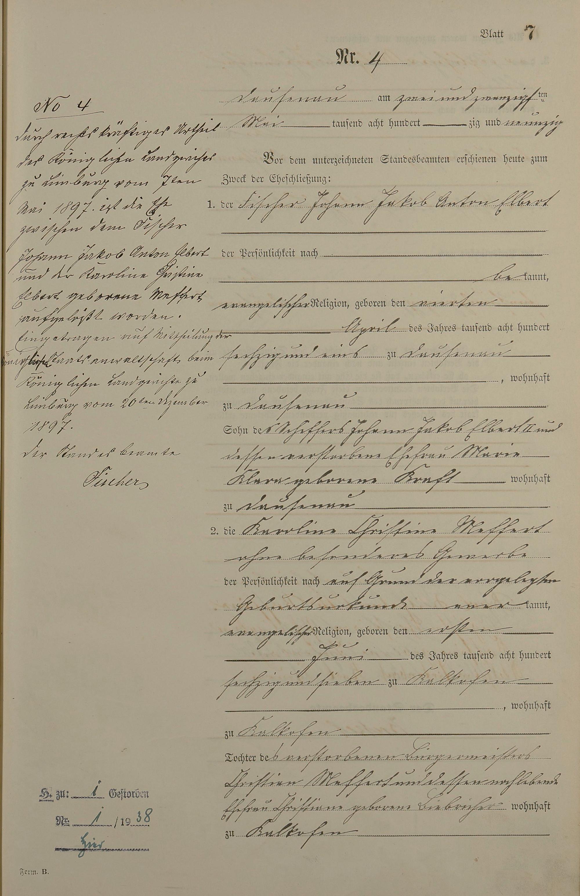 2004/17: Heiratsregister 1890