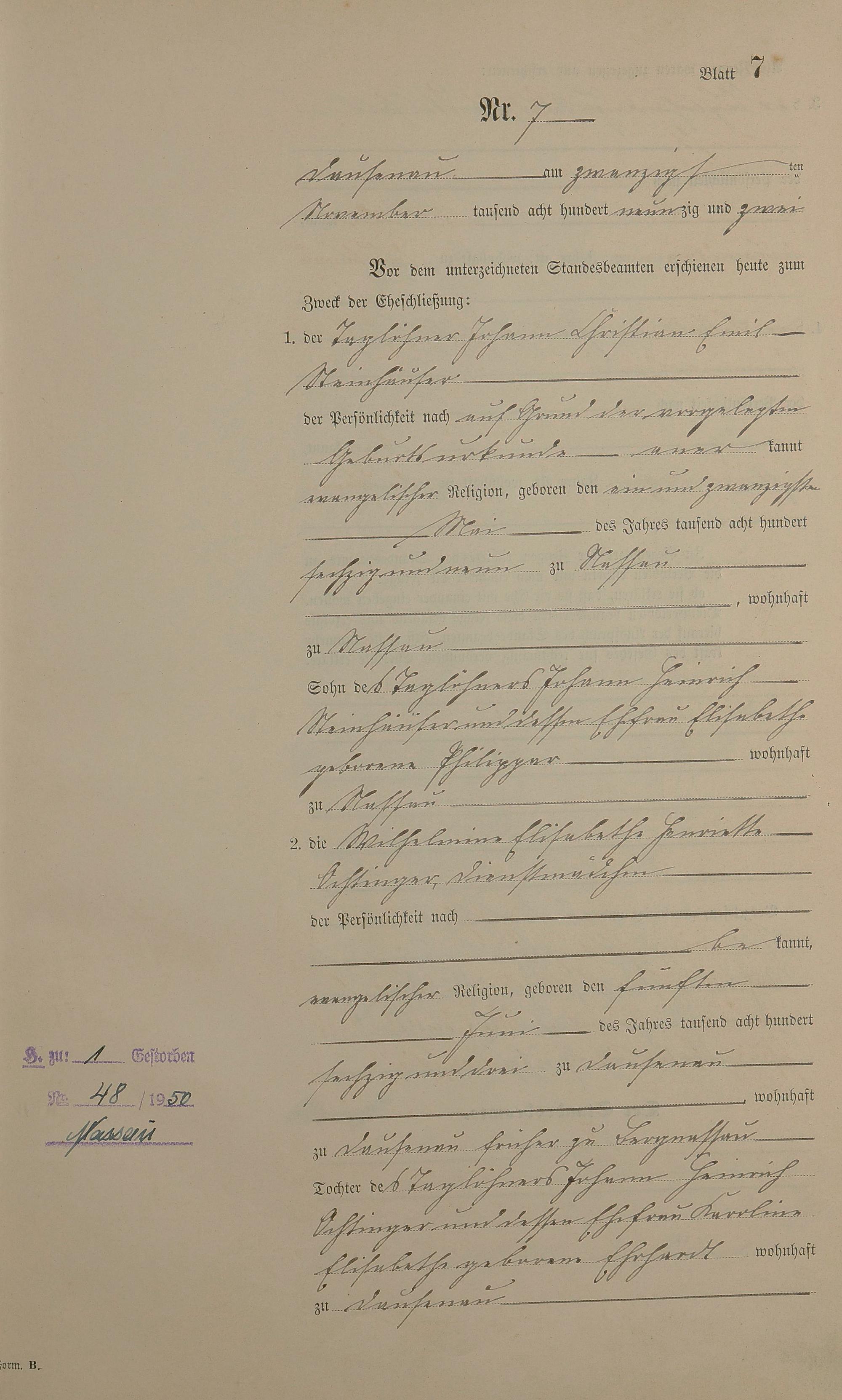 Heiratsregister 1892