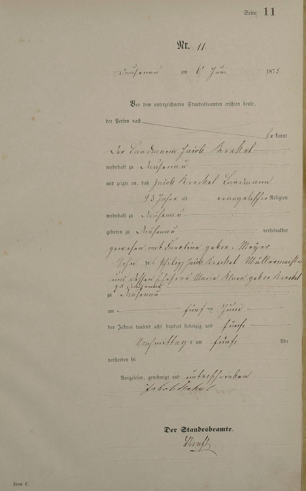 Sterberegister 1875