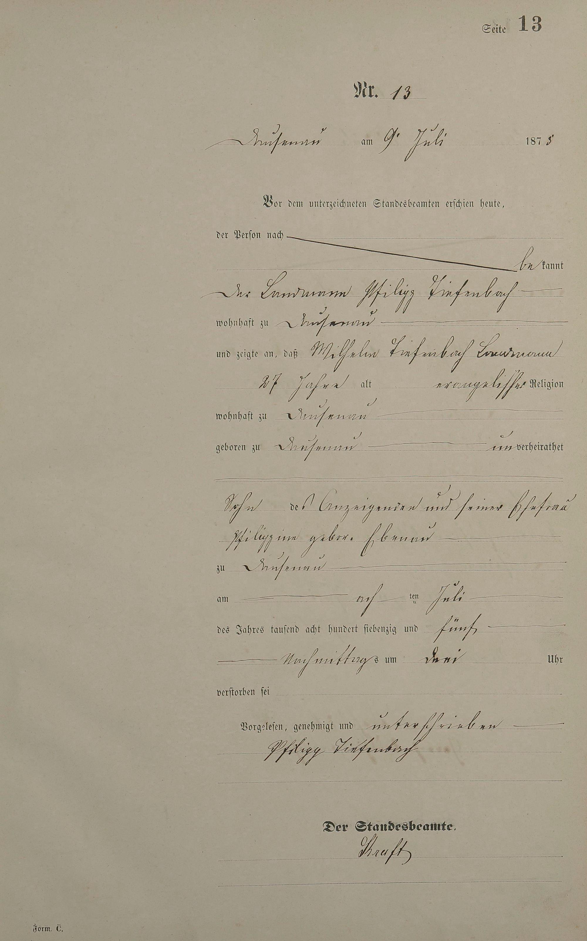 Sterberegister 1875