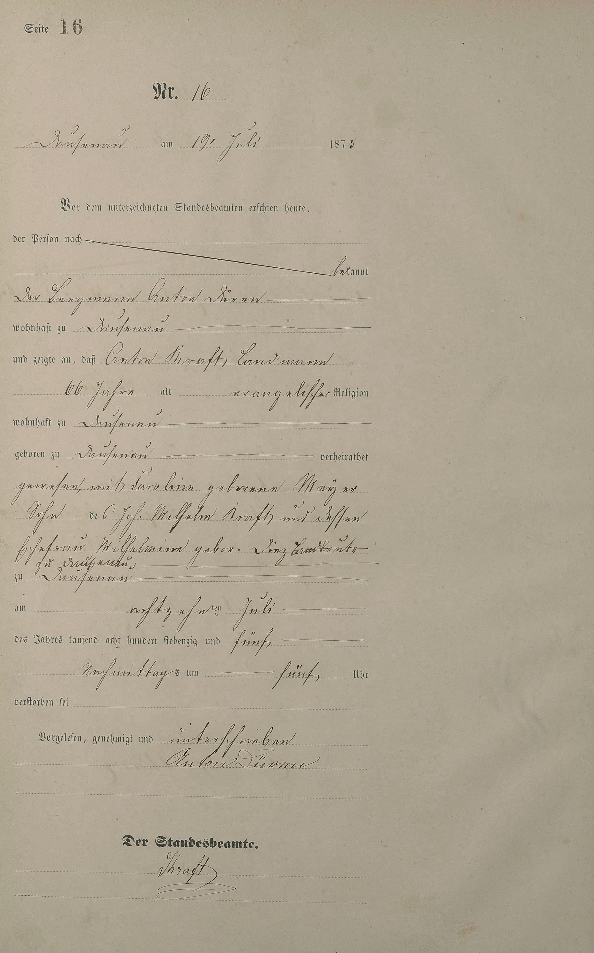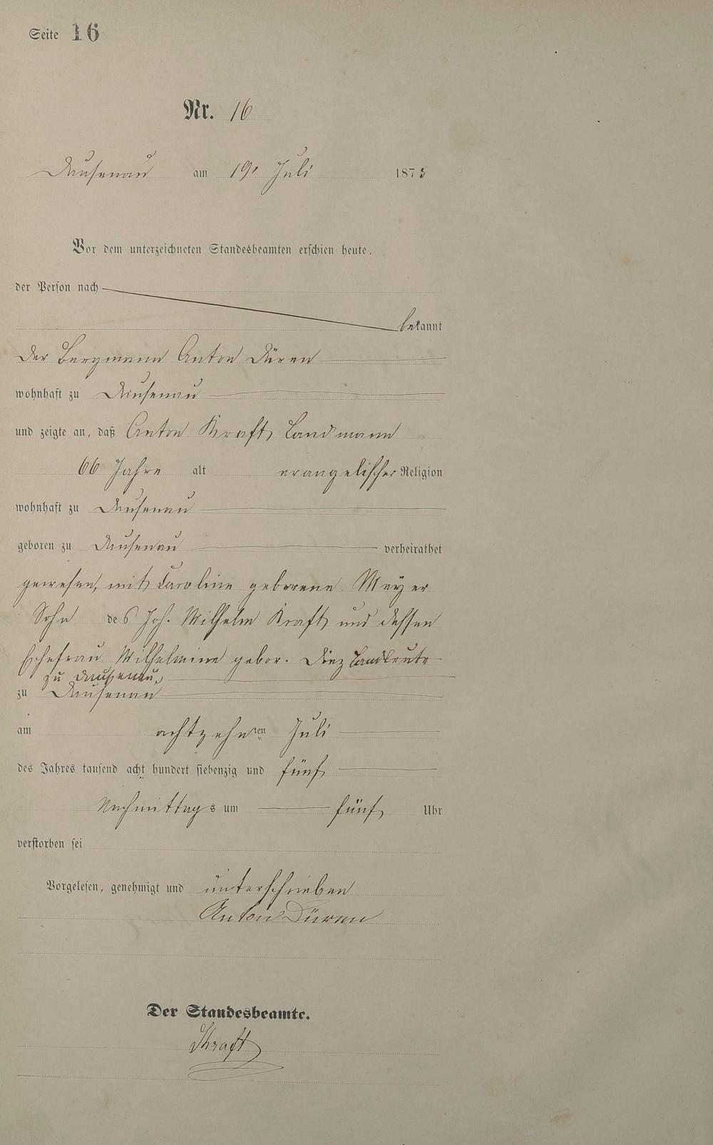 Sterberegister 1875
