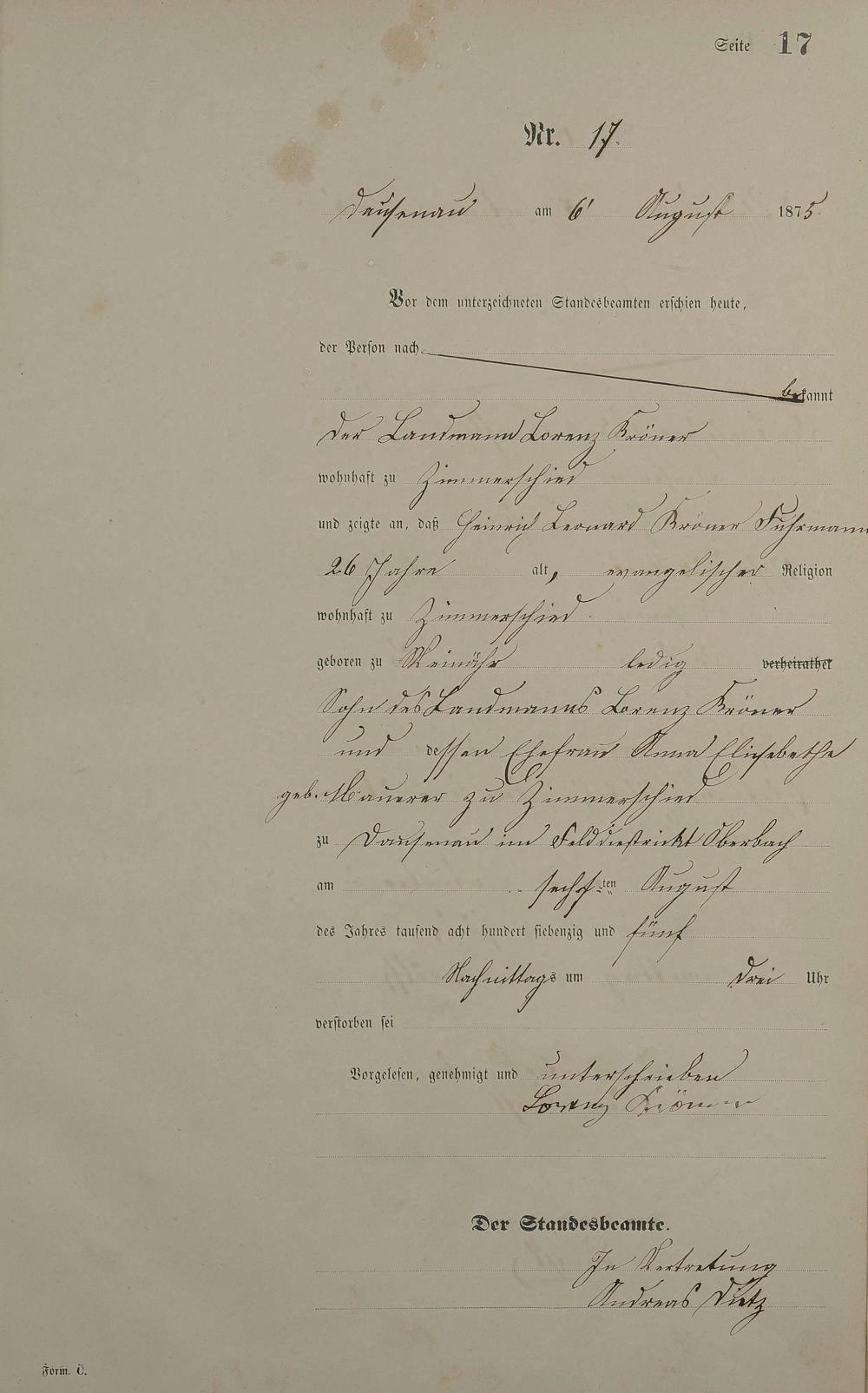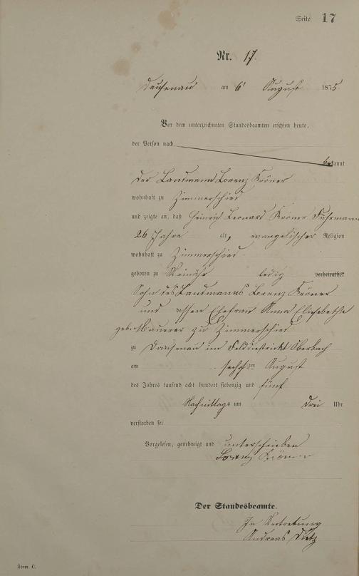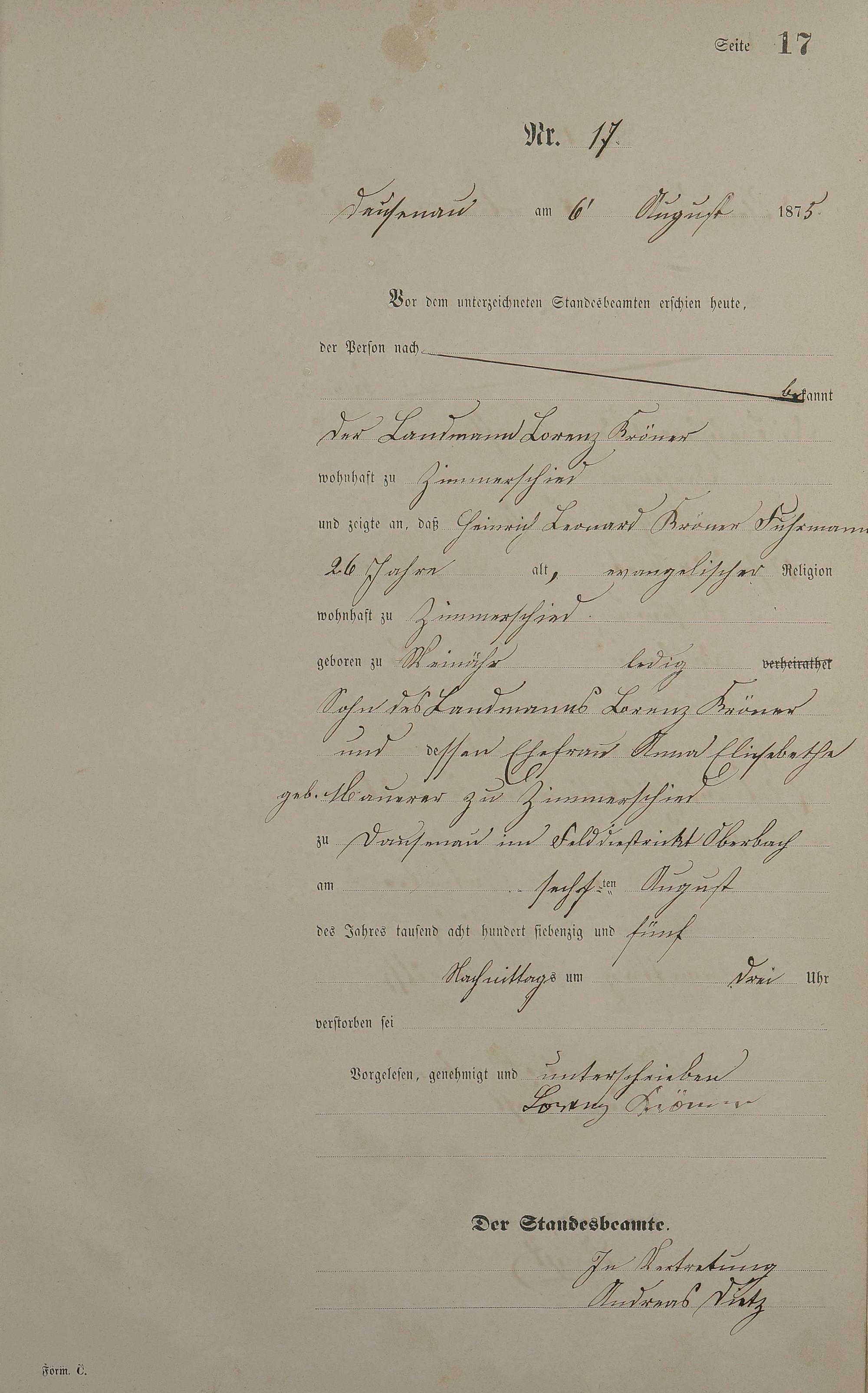 Sterberegister 1875