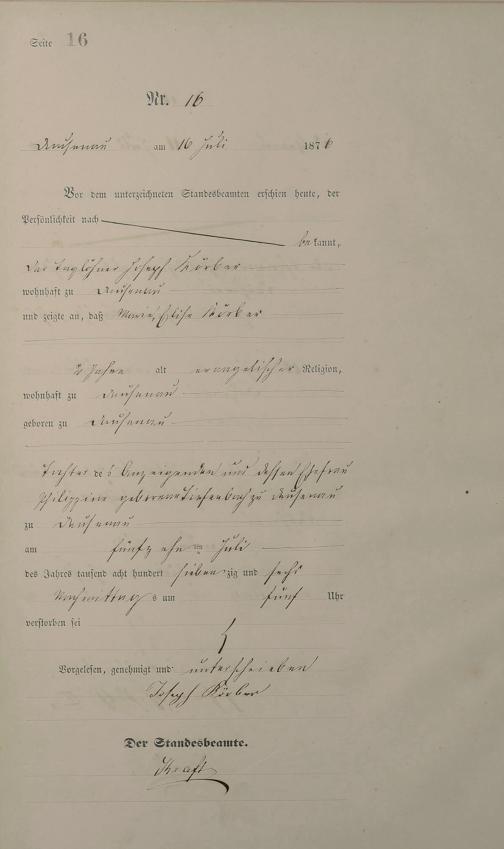 Sterberegister 1876