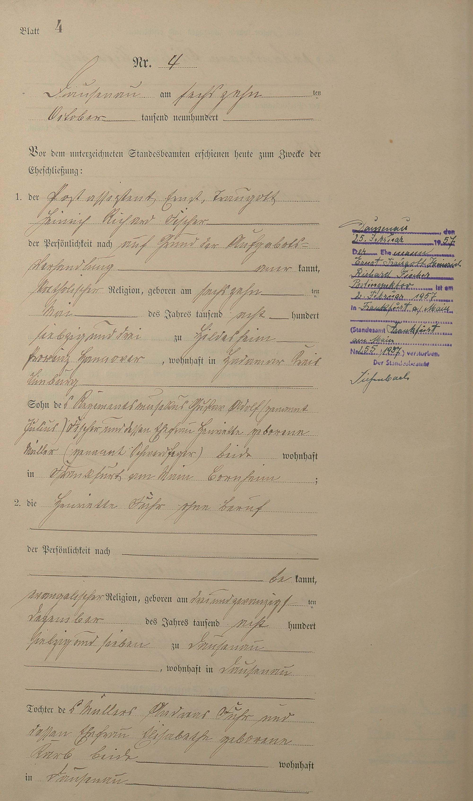 Heiratsregister 1900