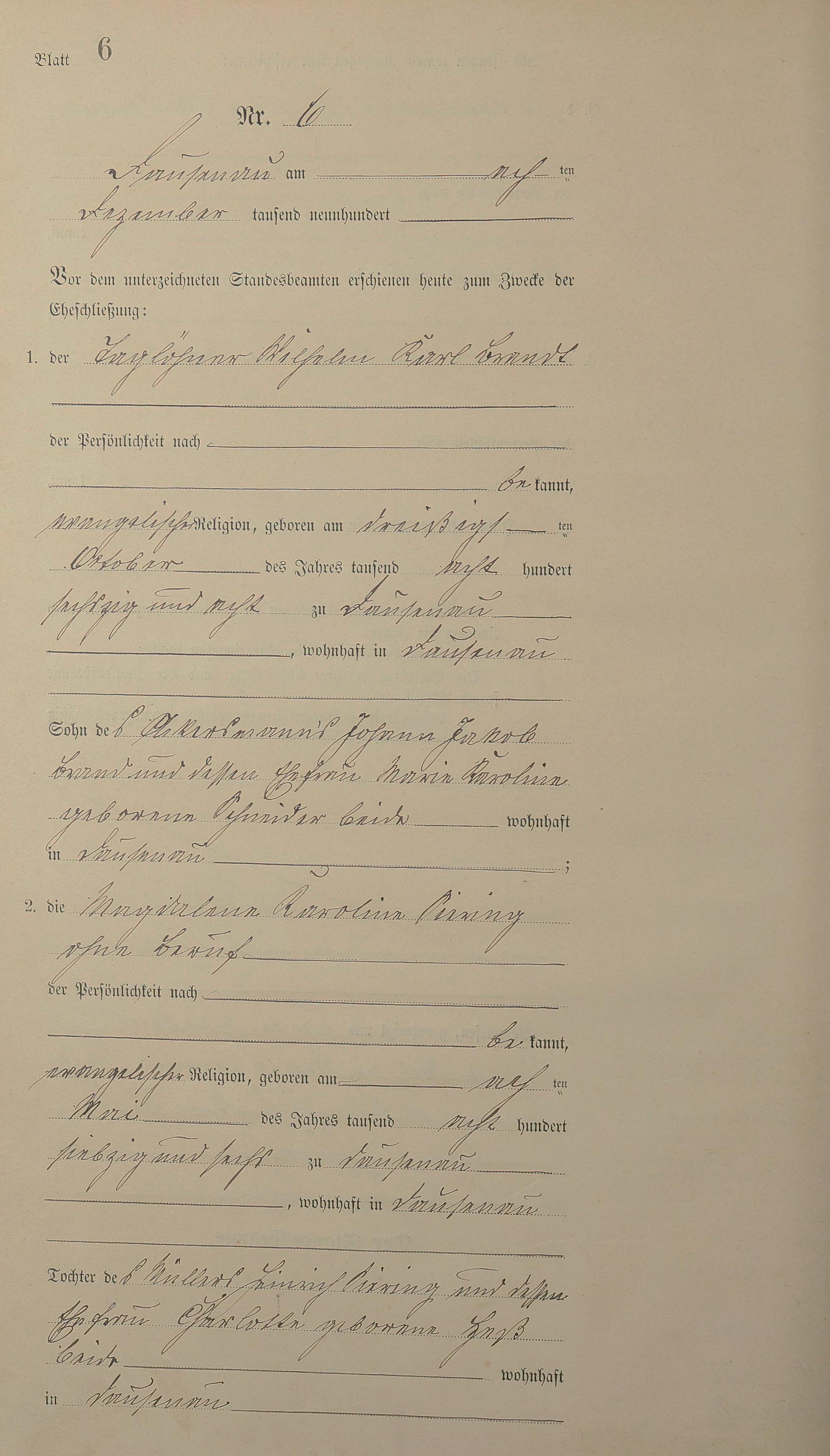 Heiratsregister 1900